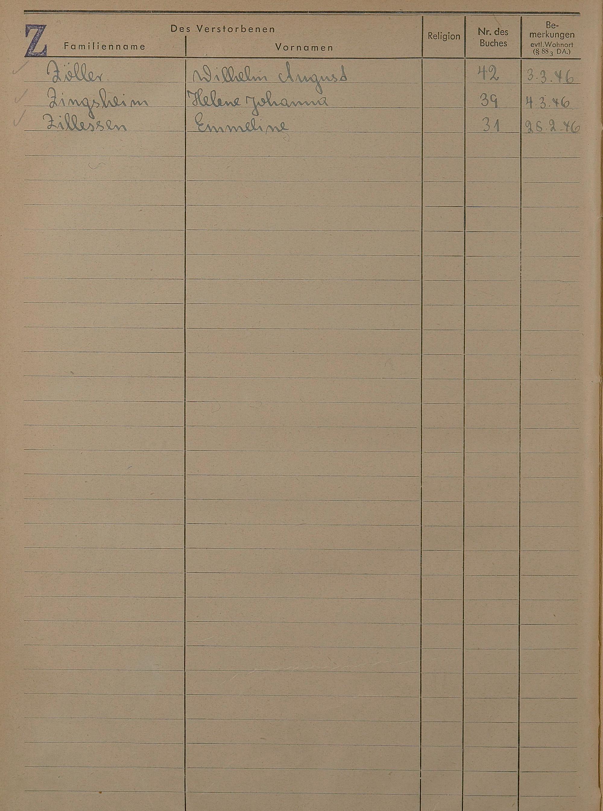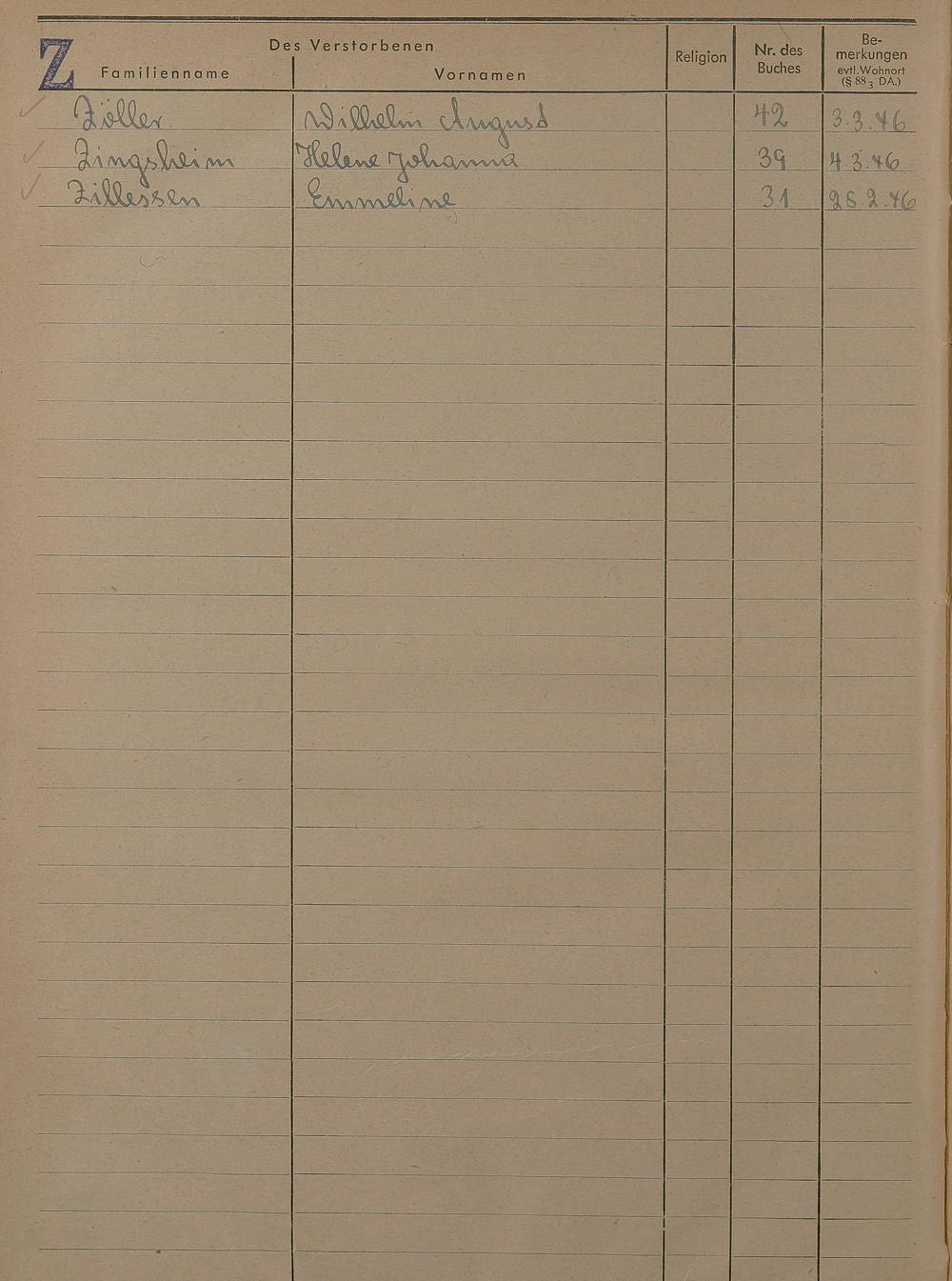 Sterberegister 1946