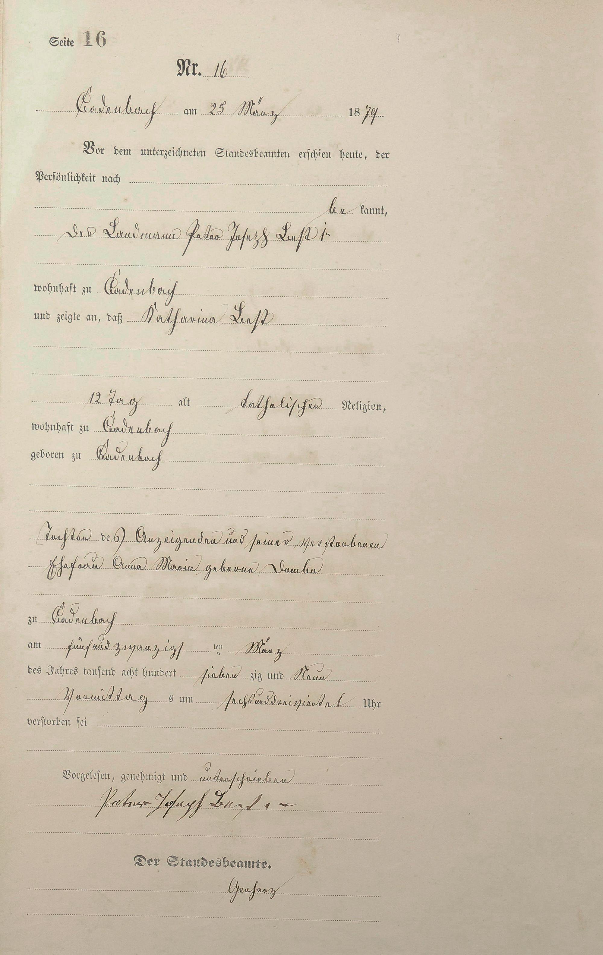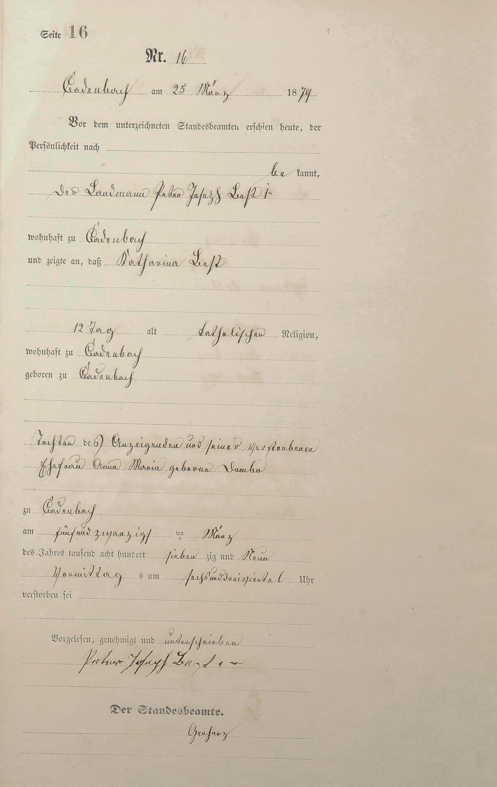 Sterberegister 1879
