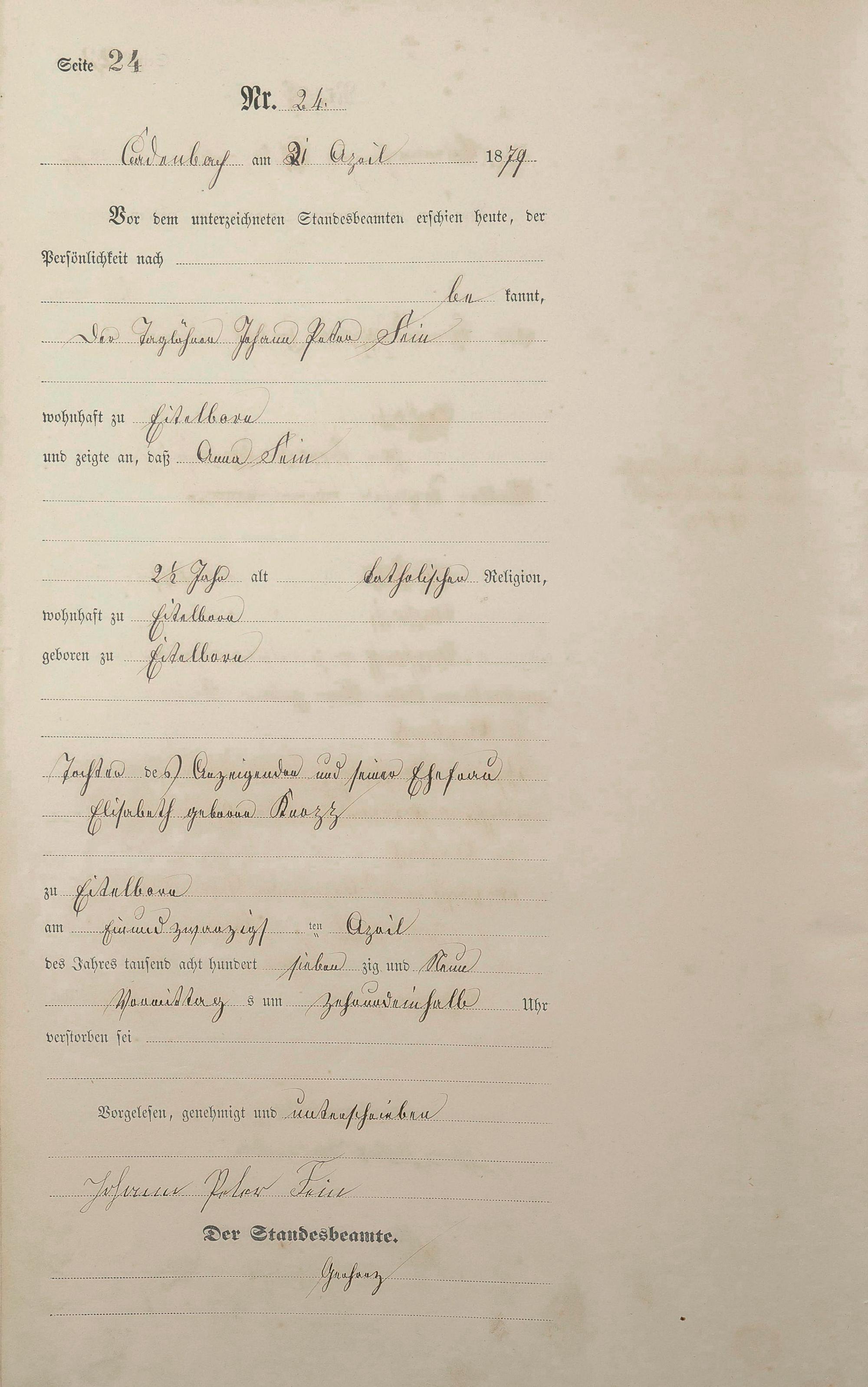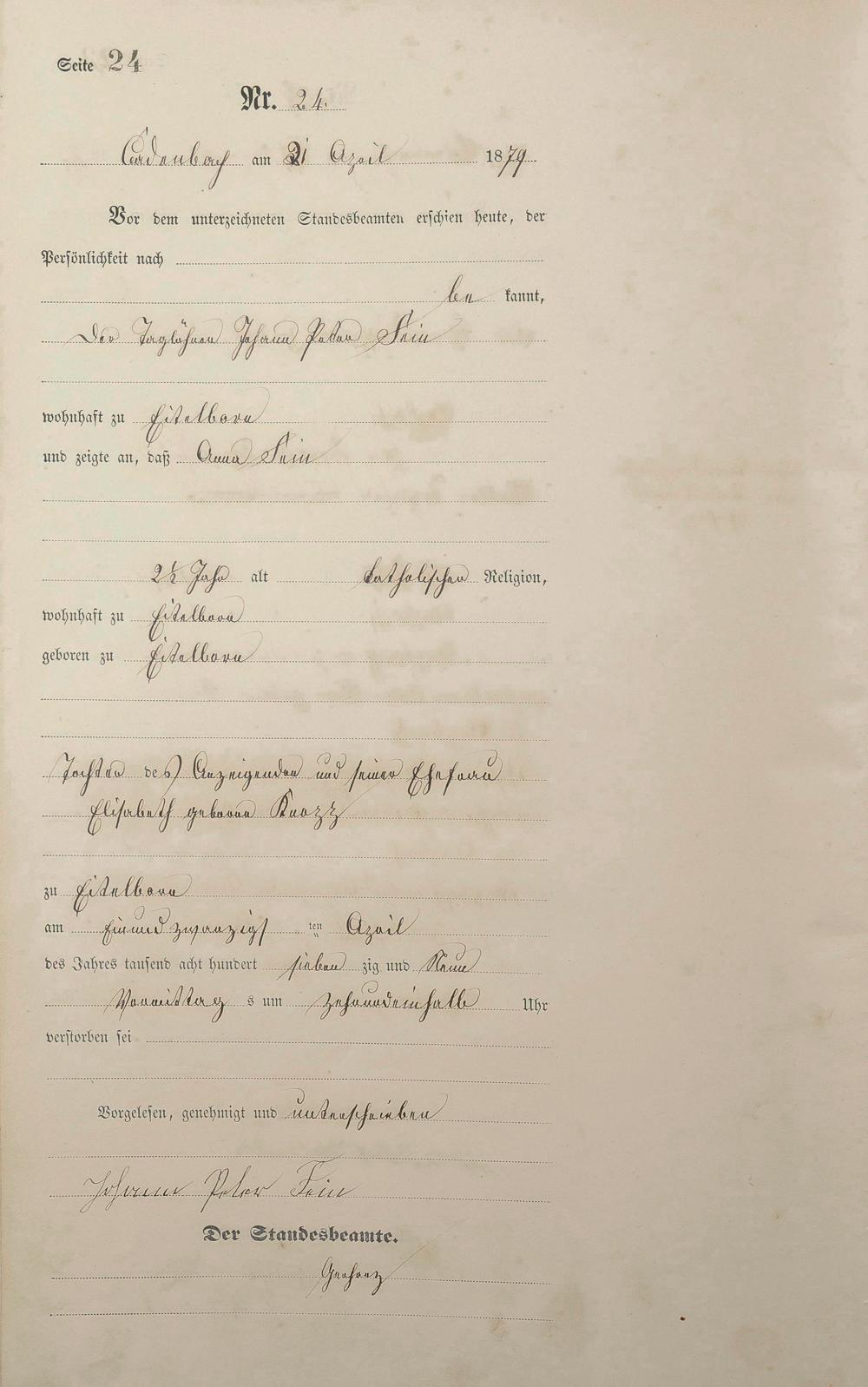 Sterberegister 1879