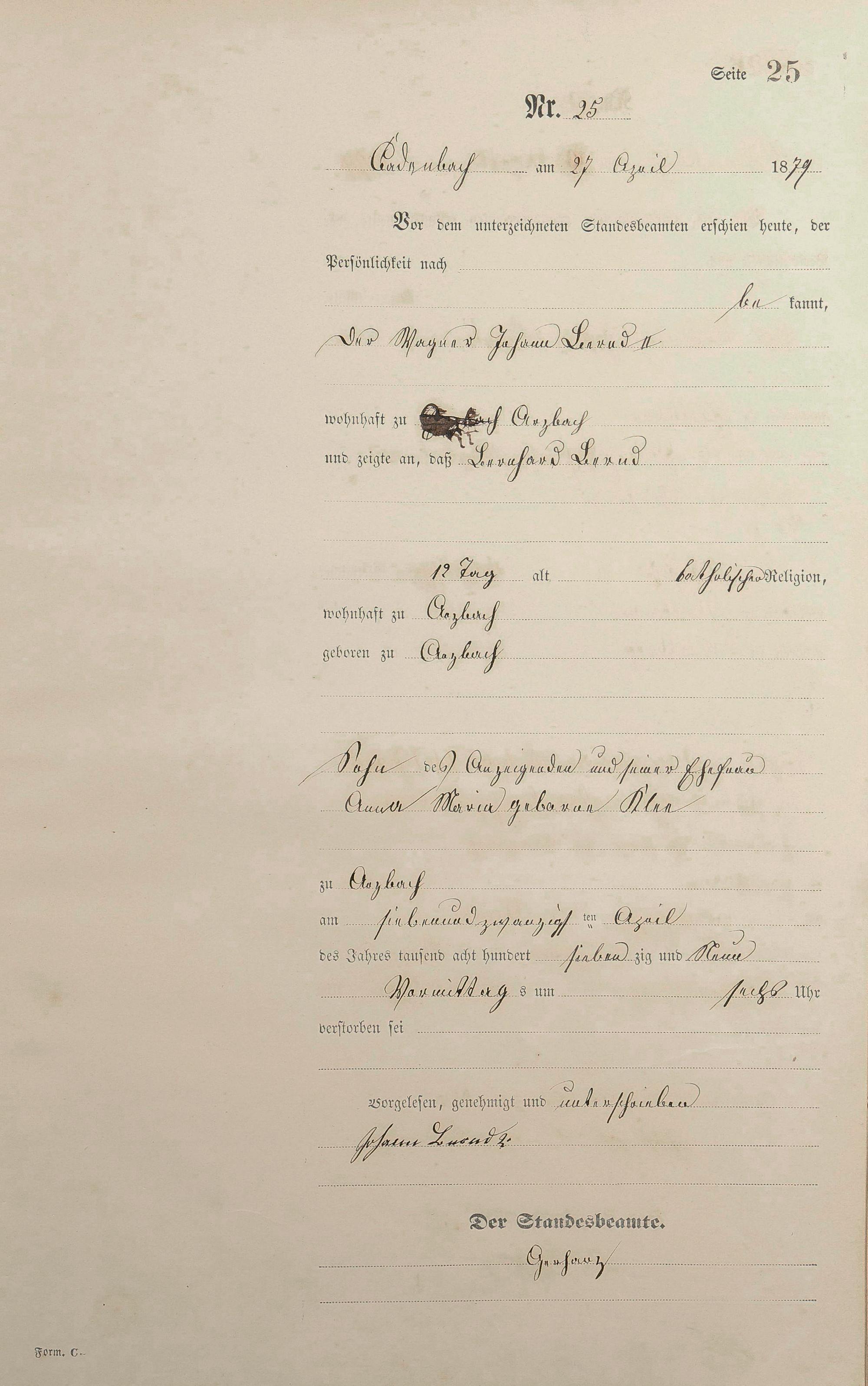 Sterberegister 1879