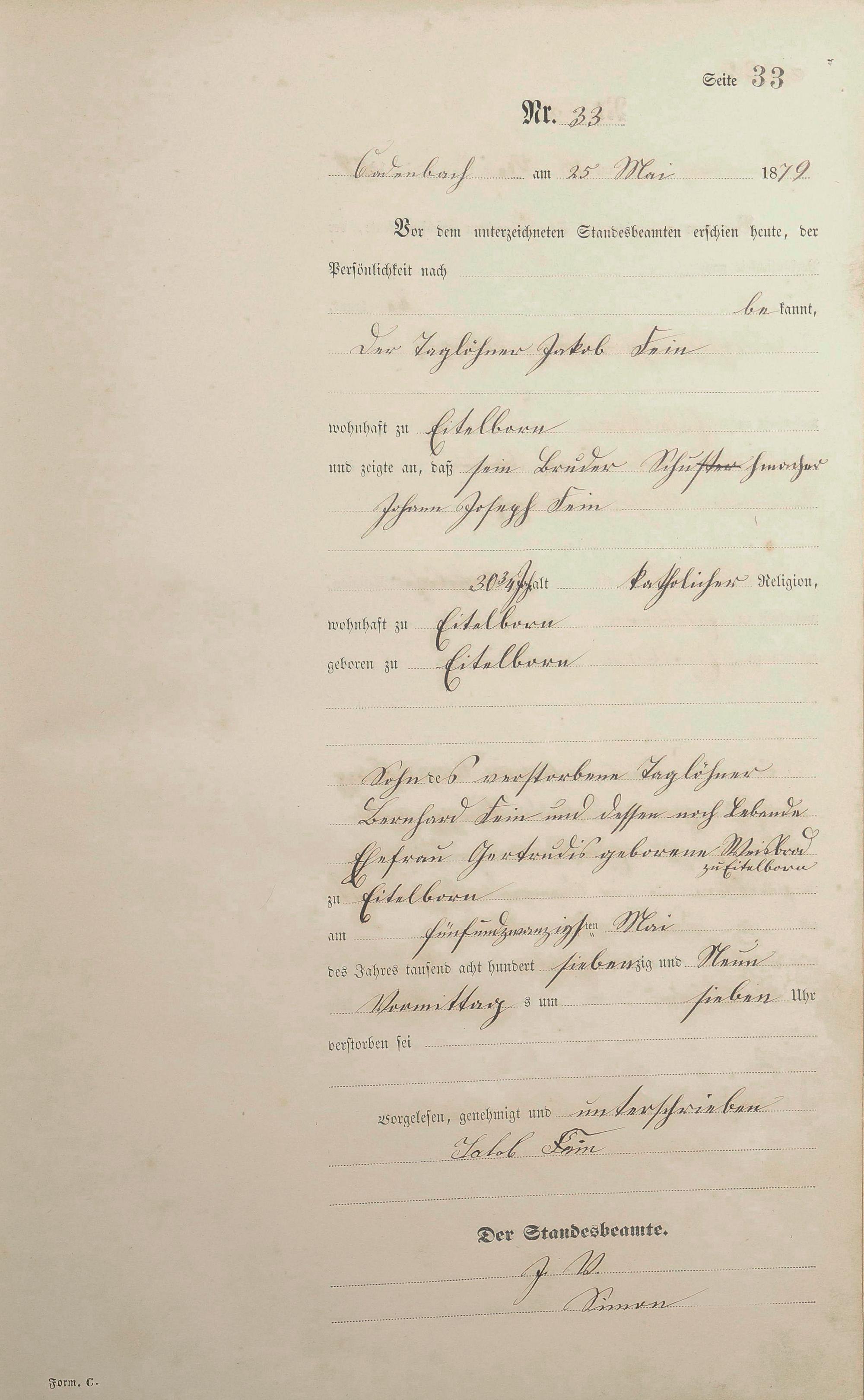 Sterberegister 1879
