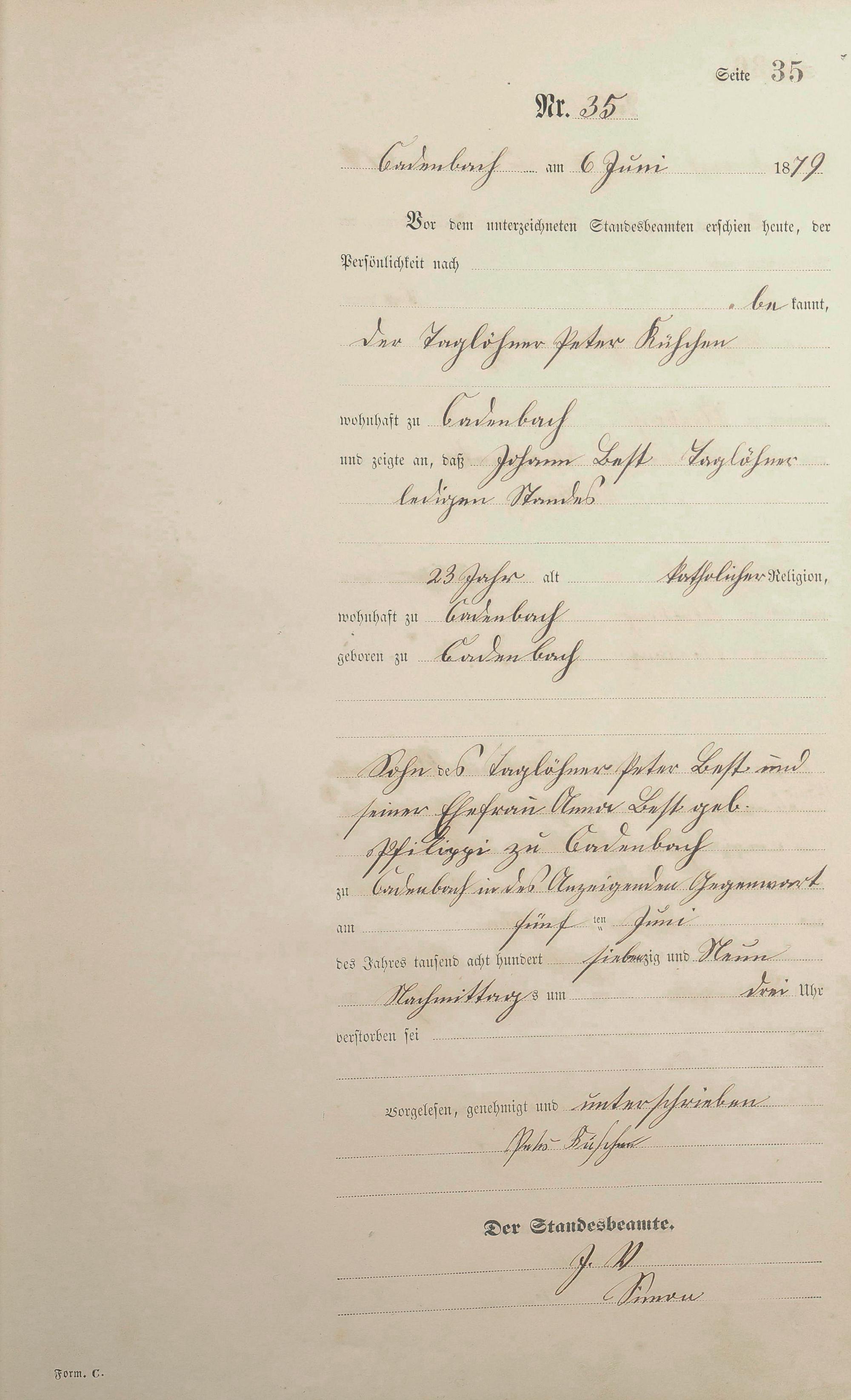 Sterberegister 1879