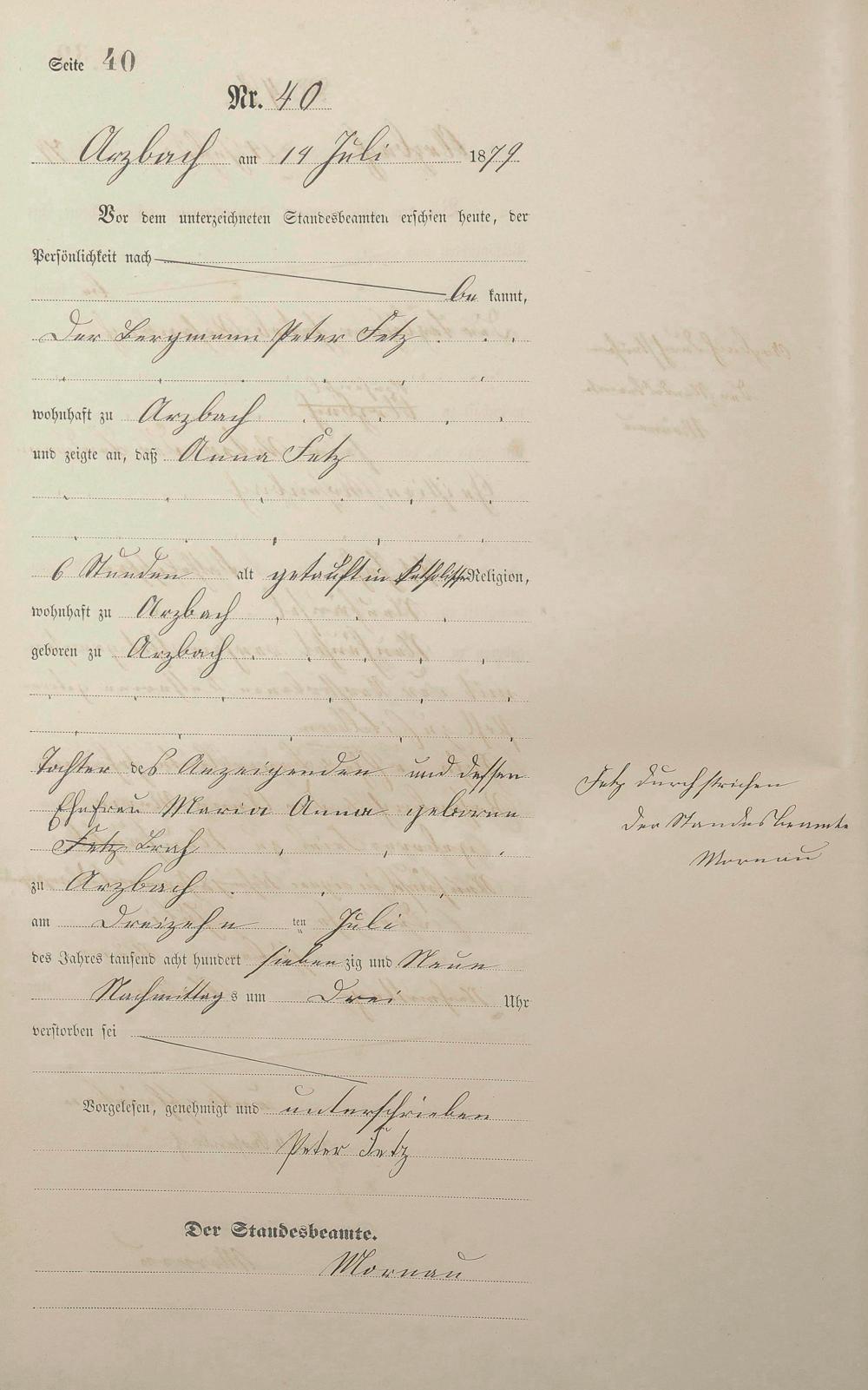 Sterberegister 1879