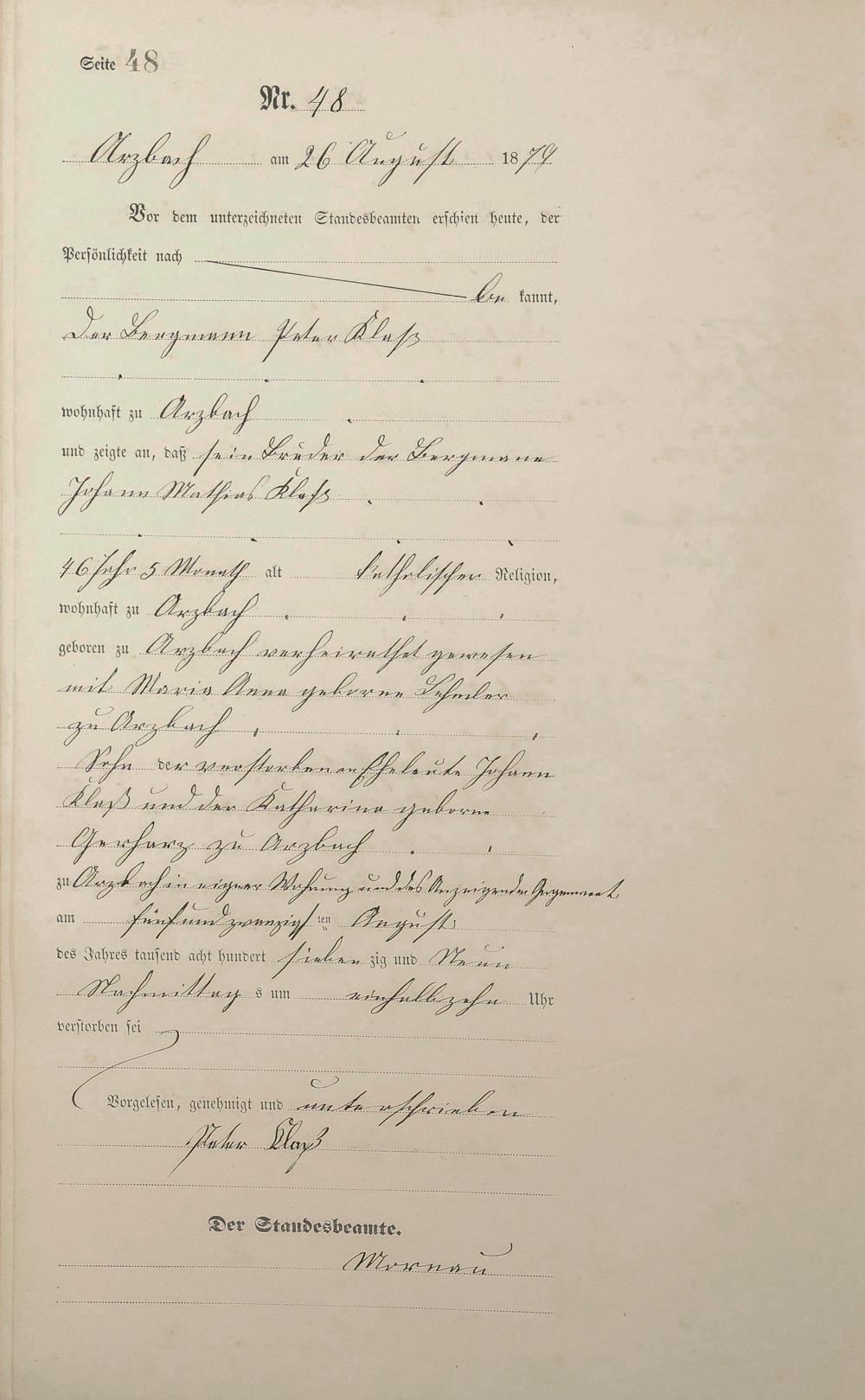 Sterberegister 1879