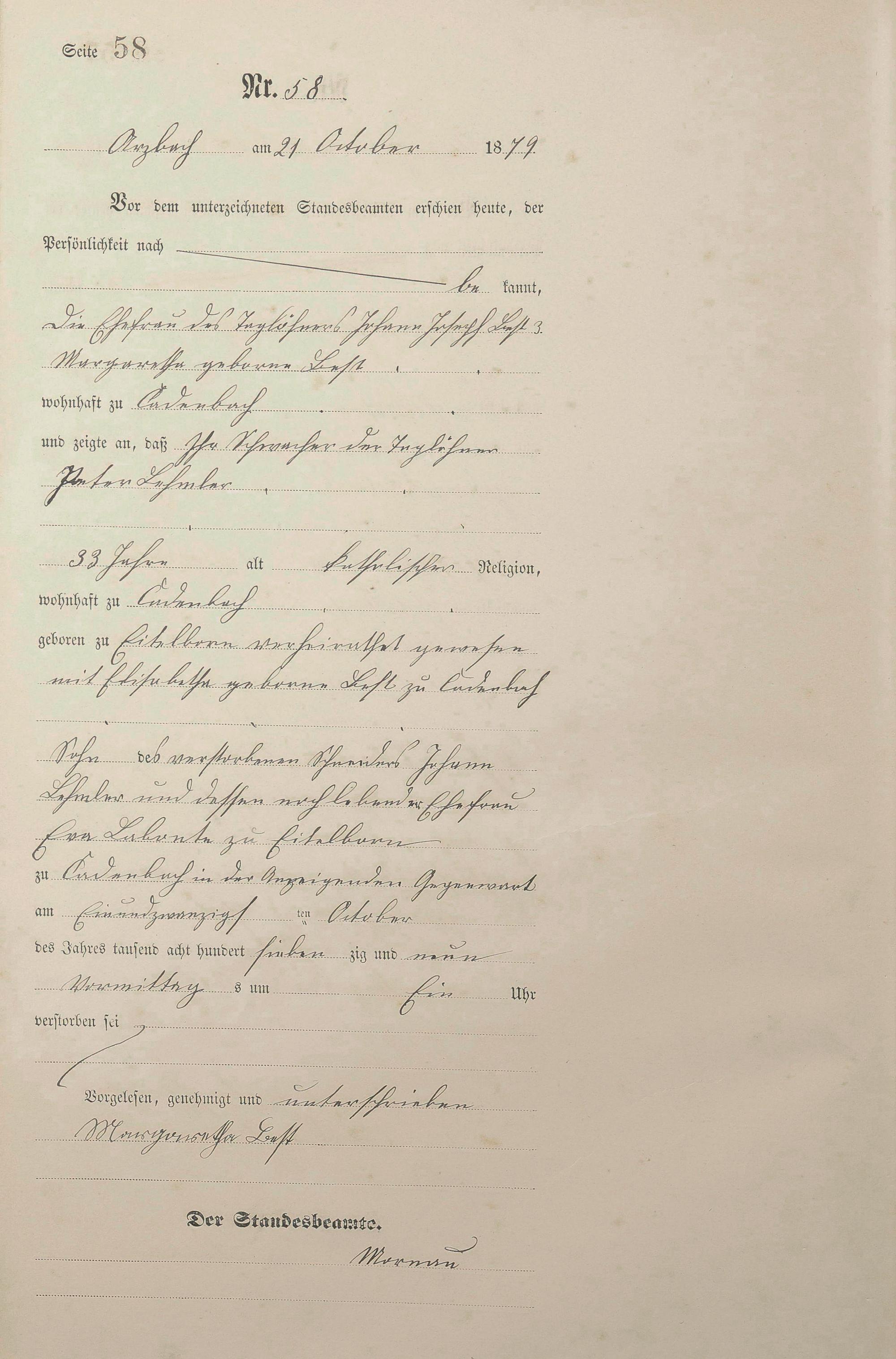 Sterberegister 1879