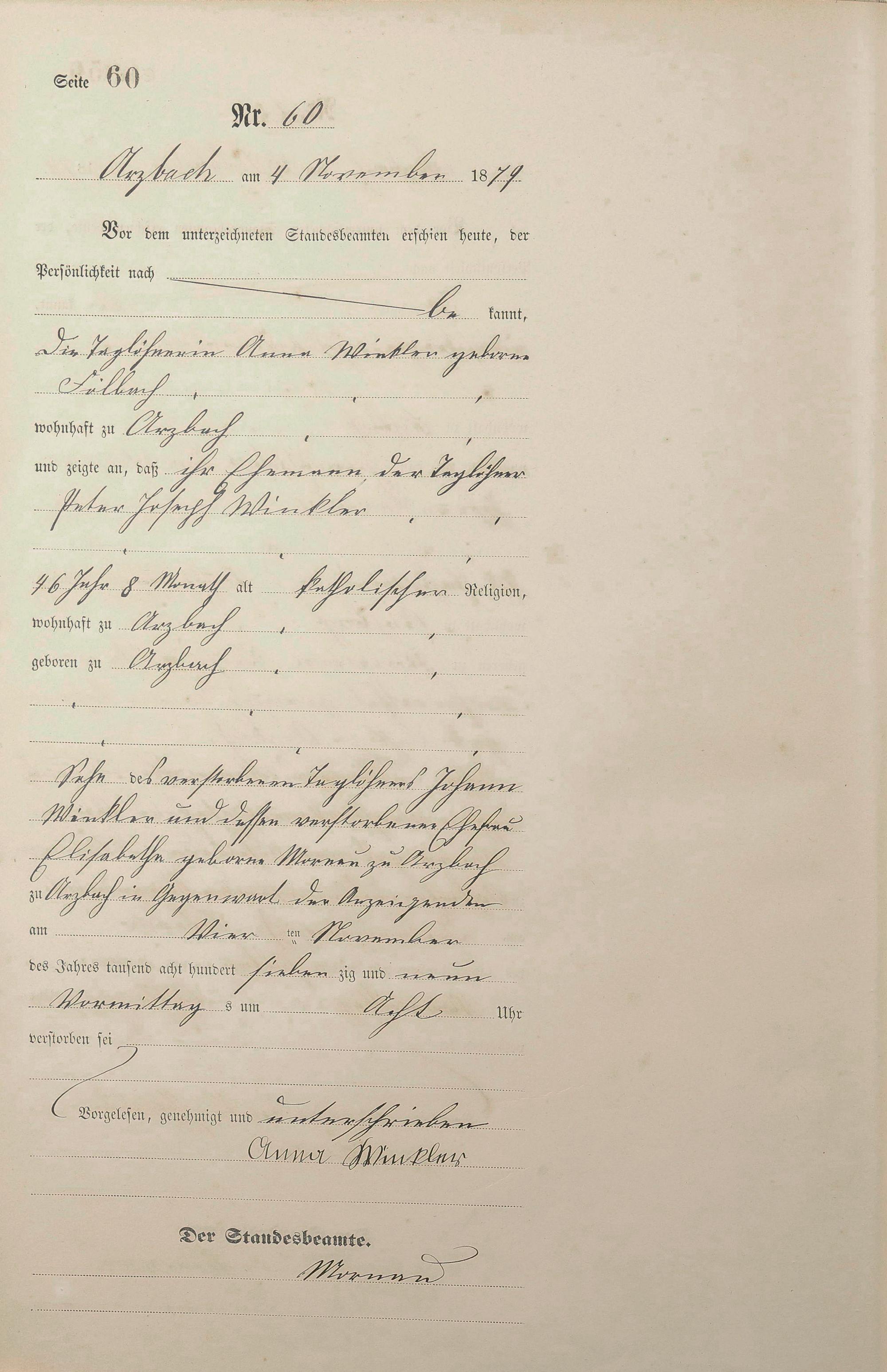 Sterberegister 1879