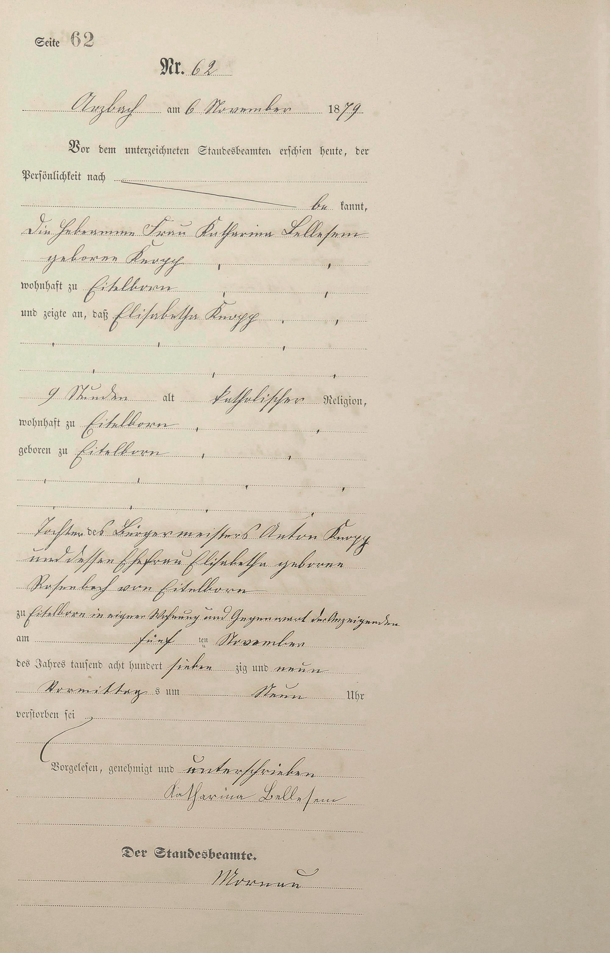 Sterberegister 1879