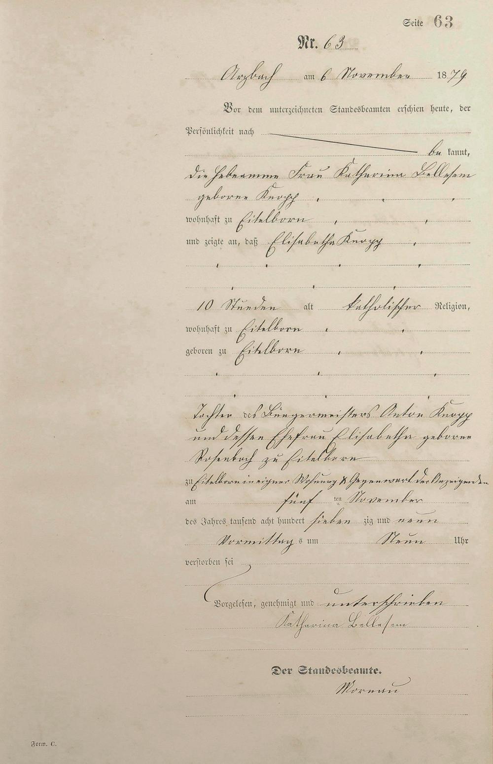 Sterberegister 1879