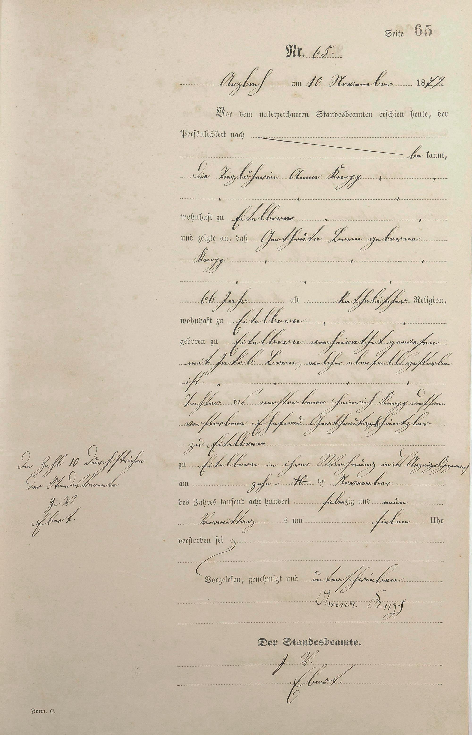 Sterberegister 1879