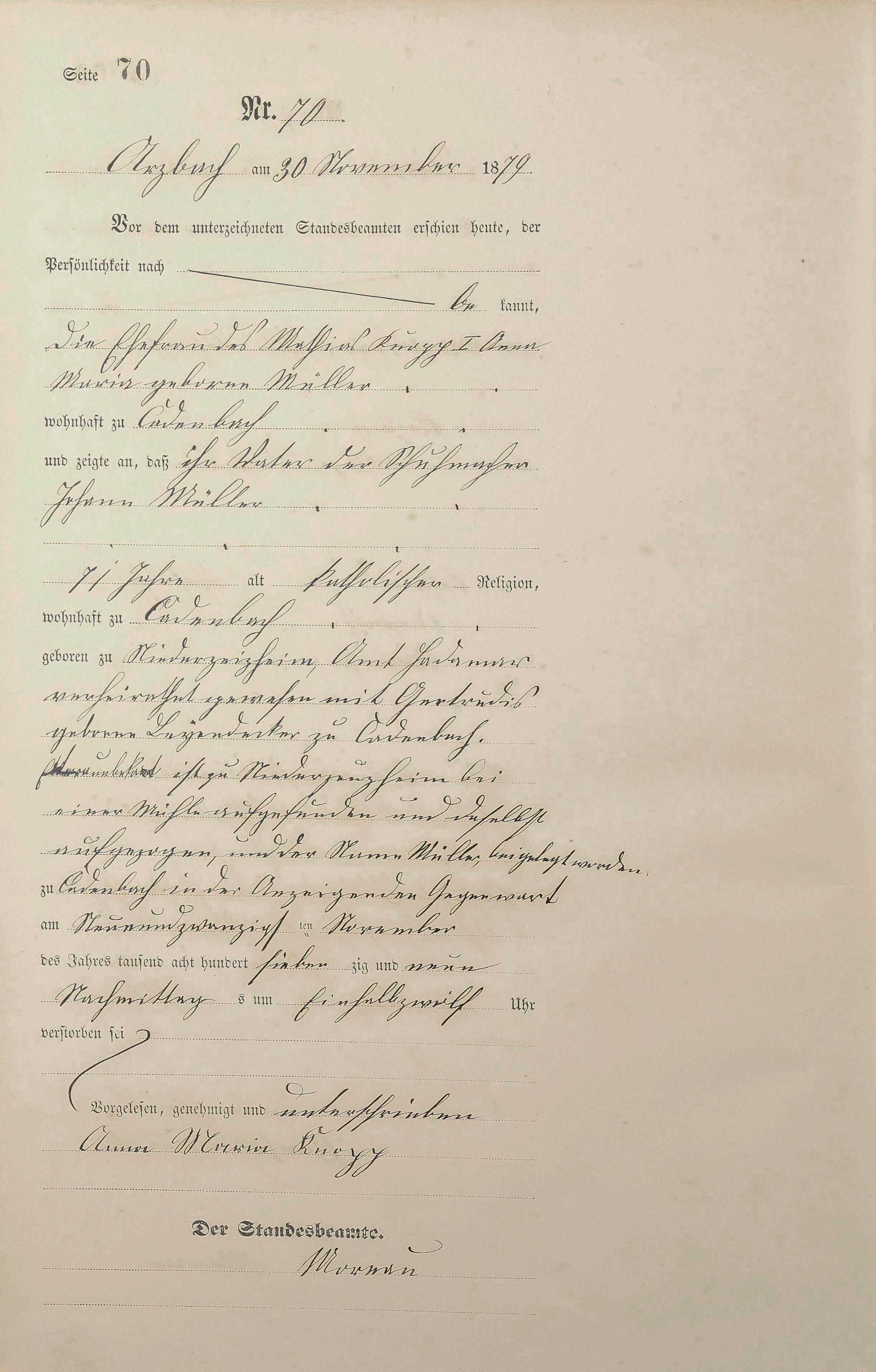 Sterberegister 1879