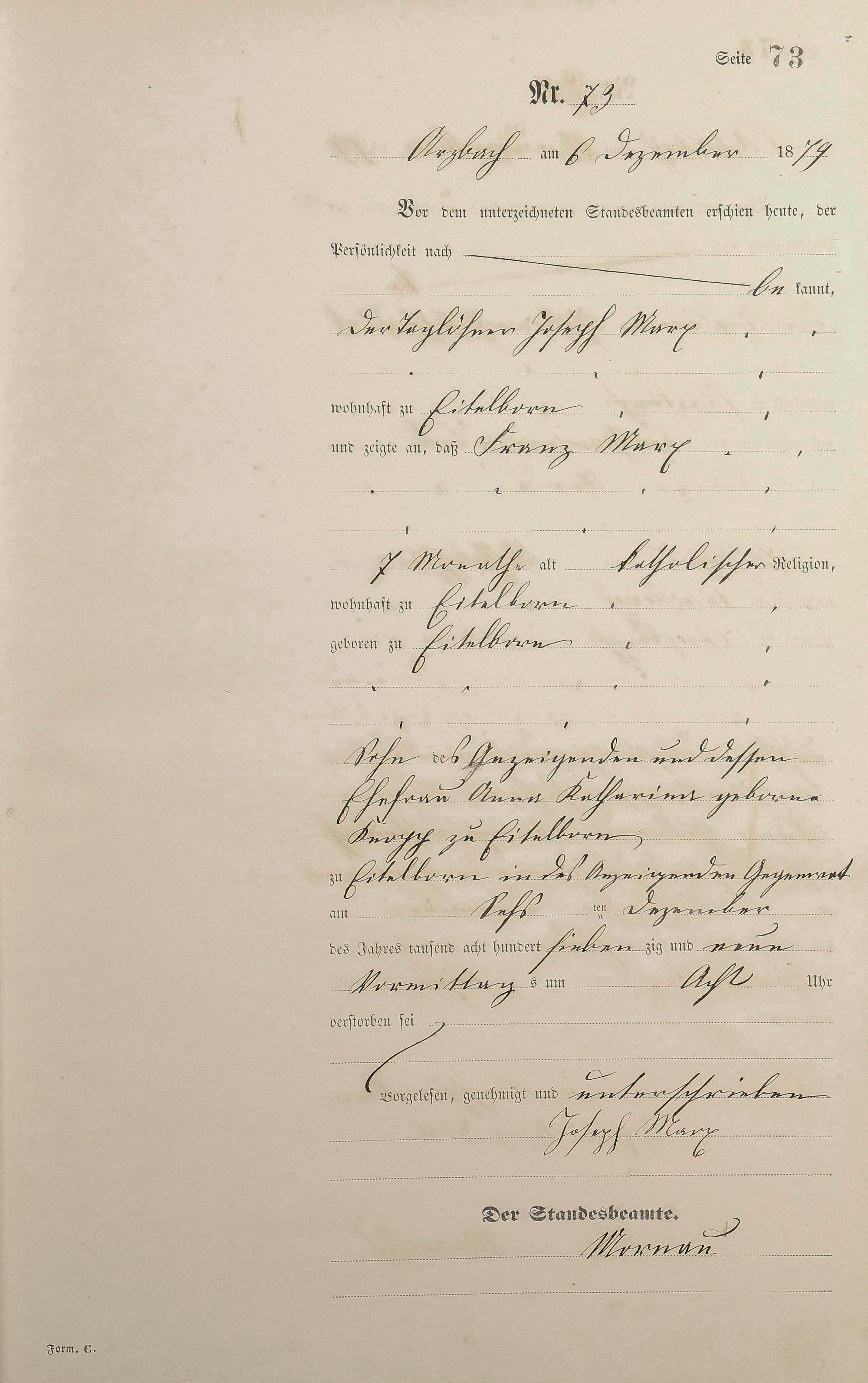 Sterberegister 1879