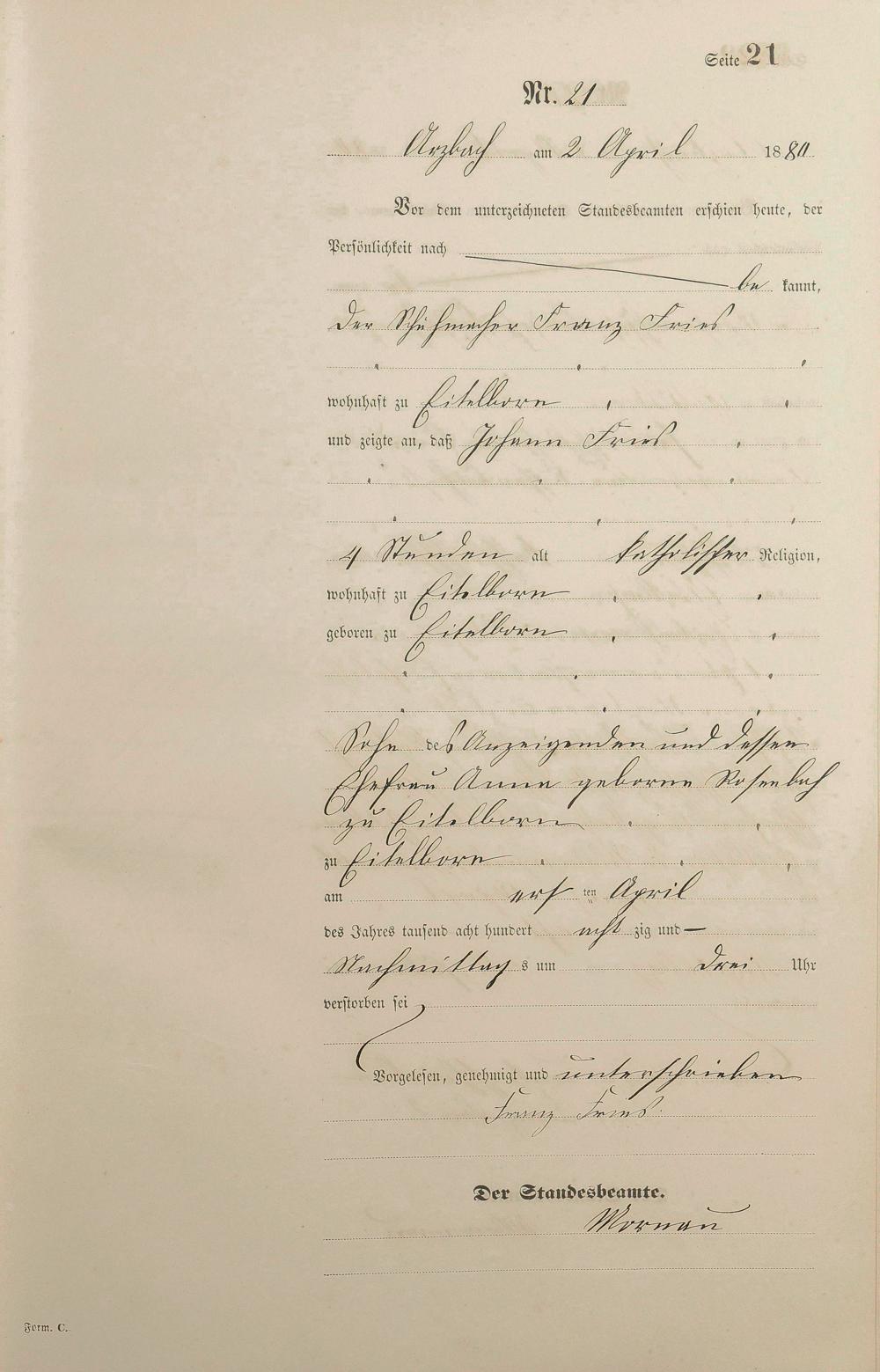 Sterberegister 1880