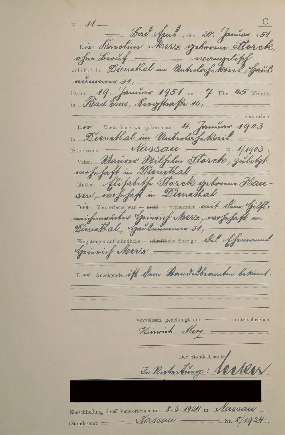 1527: Sterberegister 1951