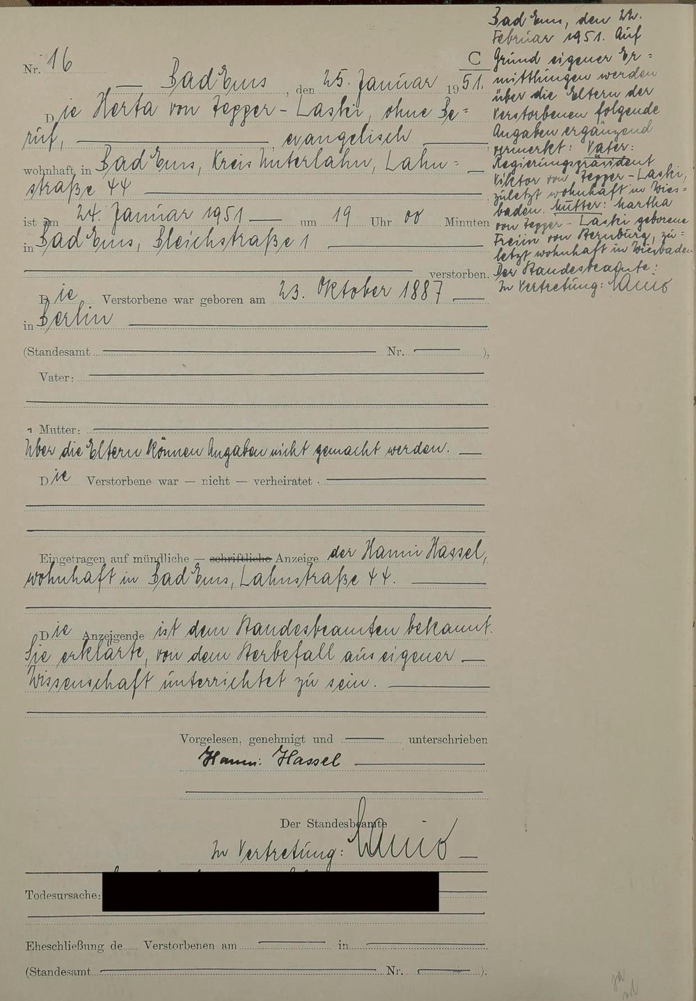 1527: Sterberegister 1951