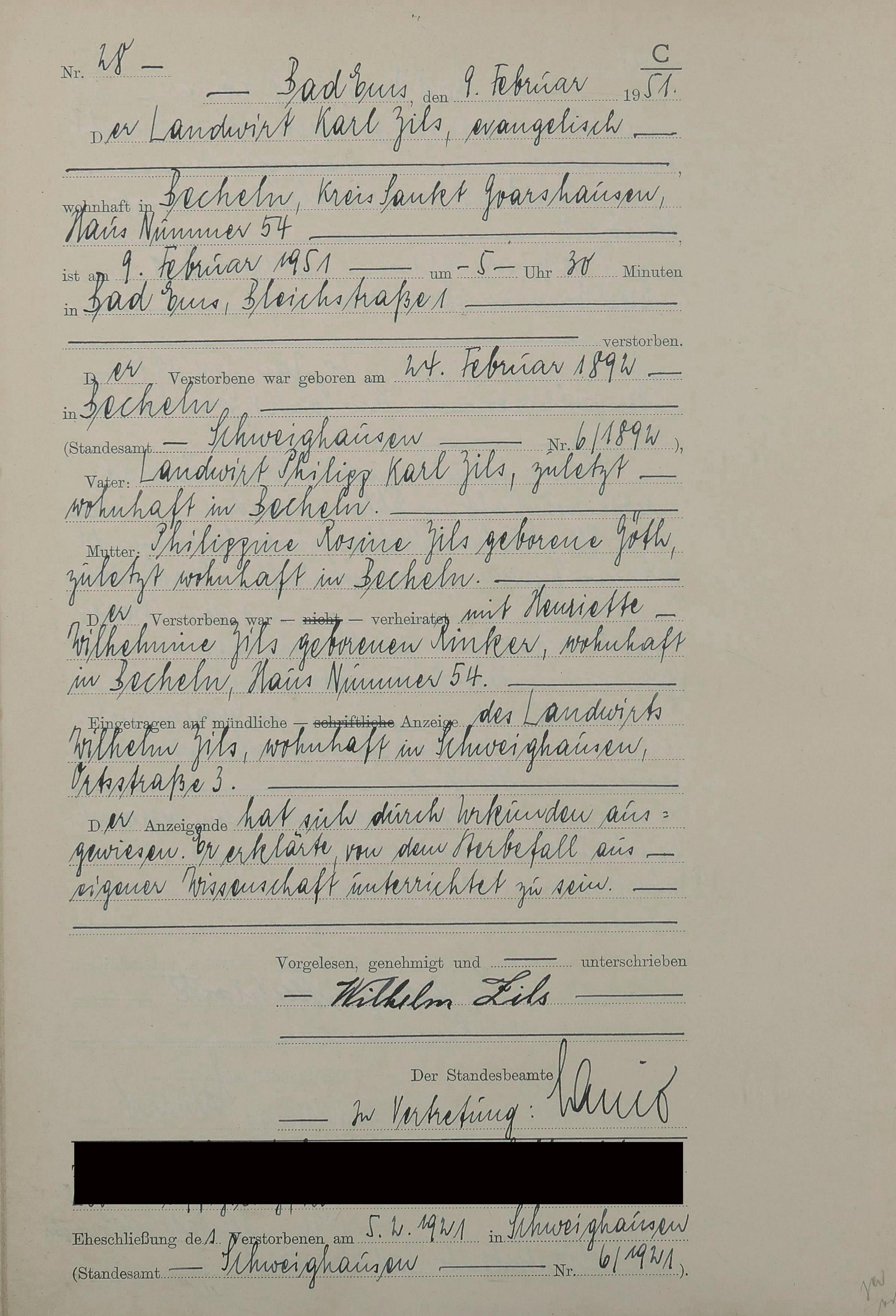 1527: Sterberegister 1951