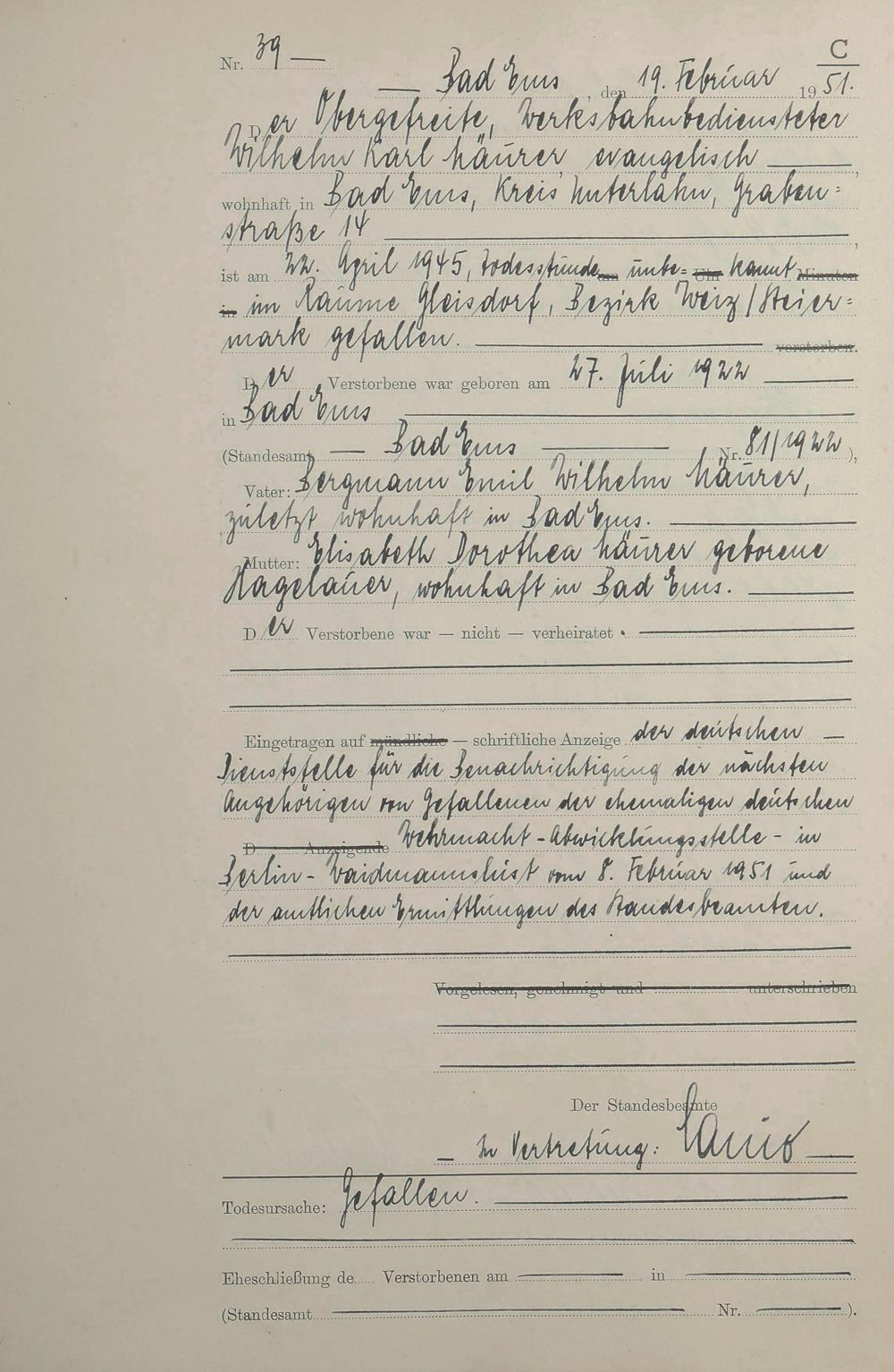 1527: Sterberegister 1951