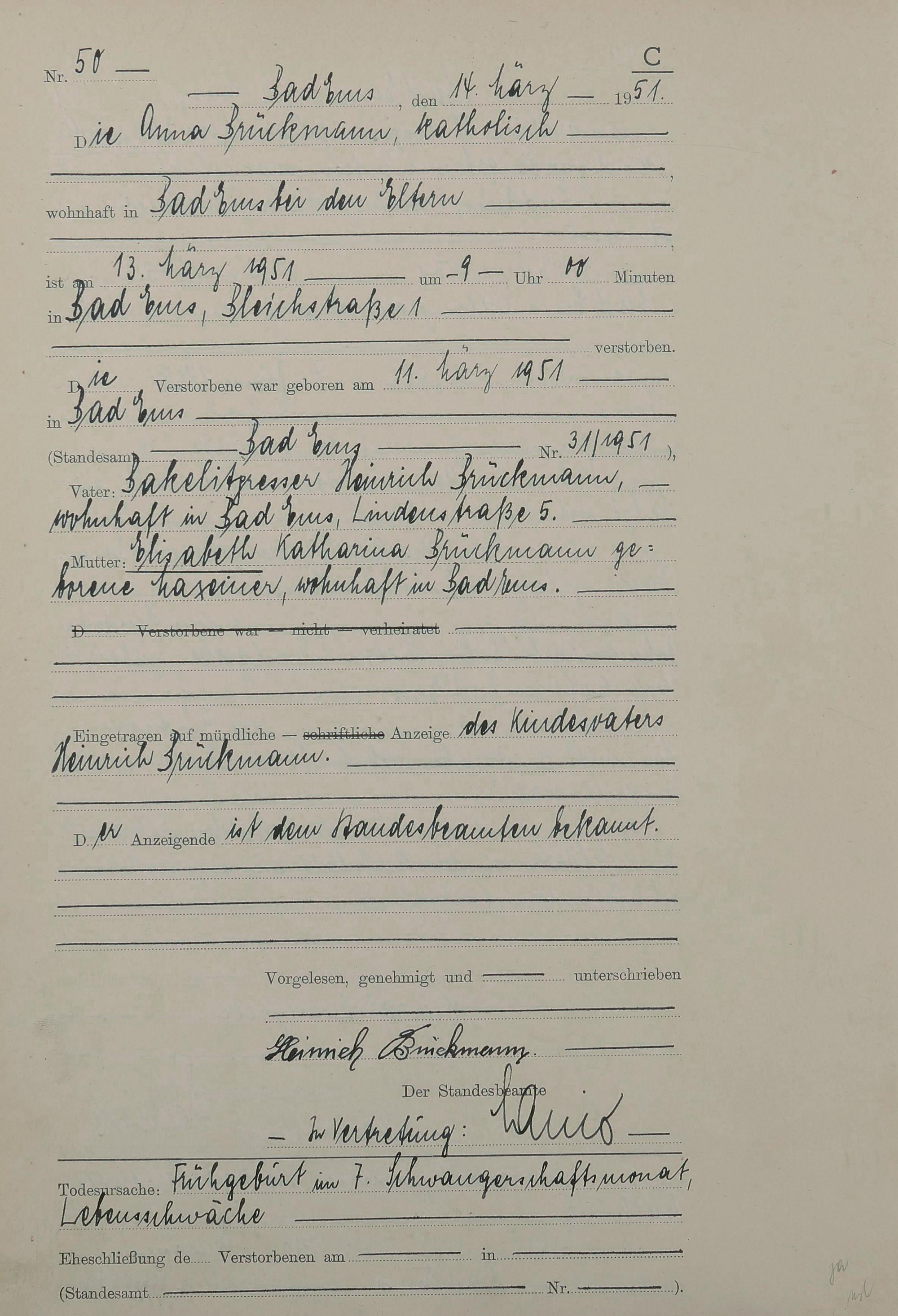 Sterberegister 1951