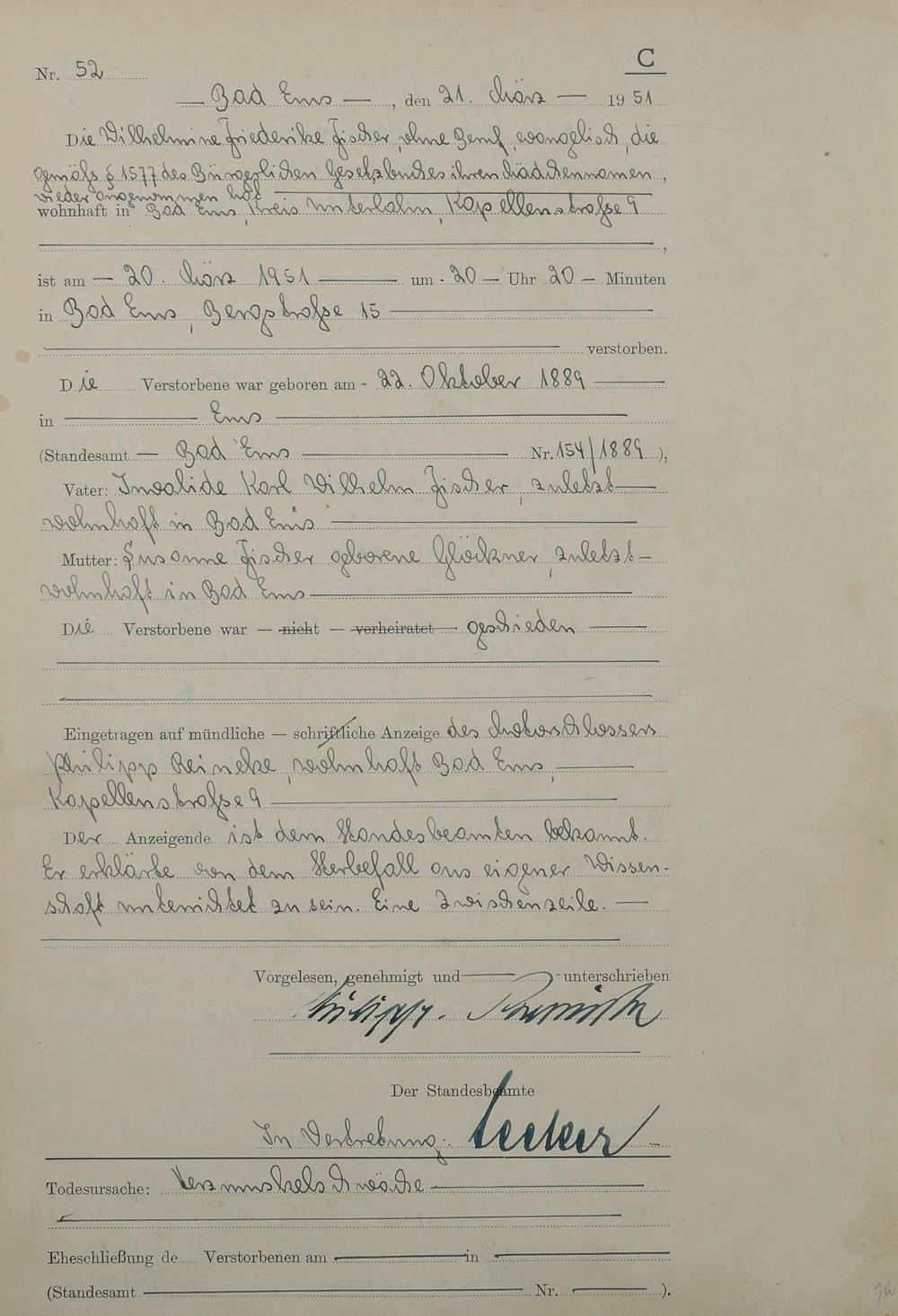 Sterberegister 1951