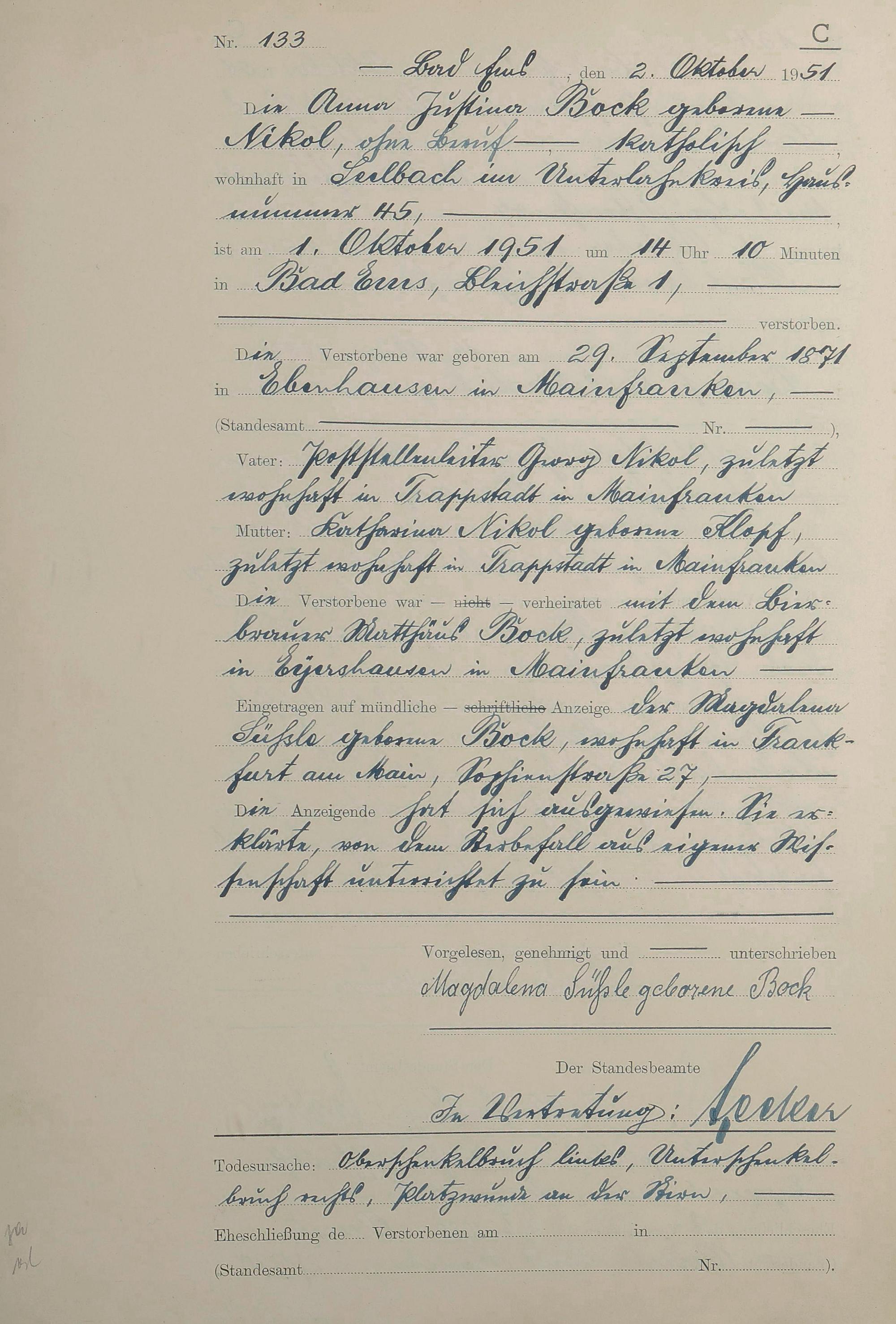 1527: Sterberegister 1951