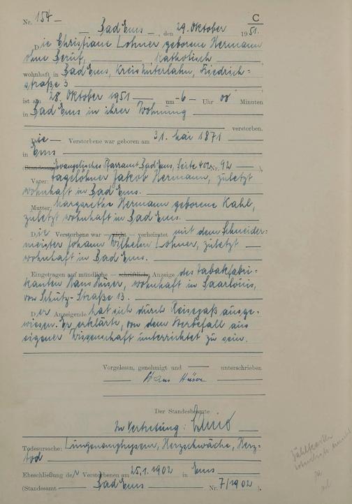 1527: Sterberegister 1951
