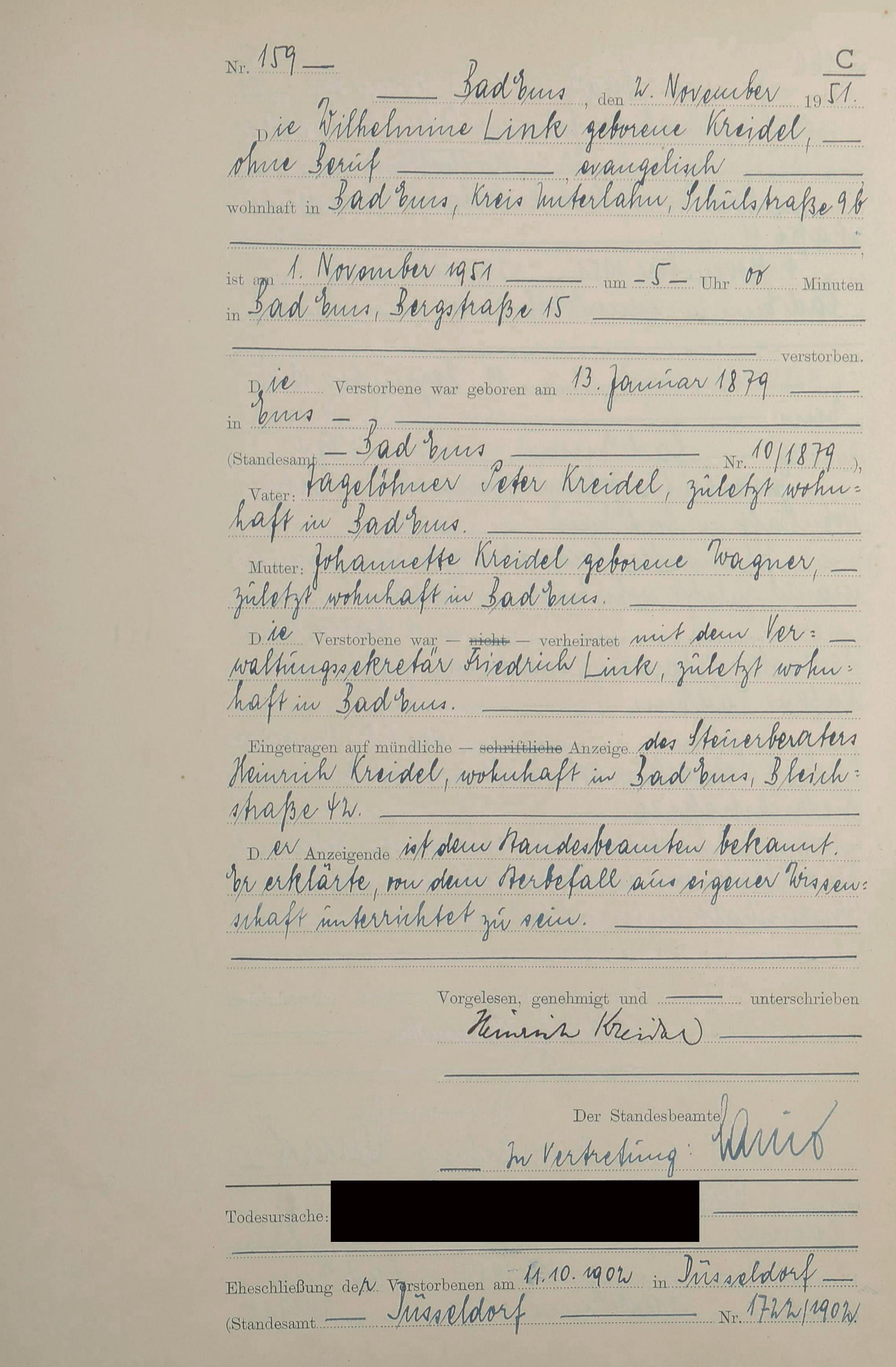 1527: Sterberegister 1951