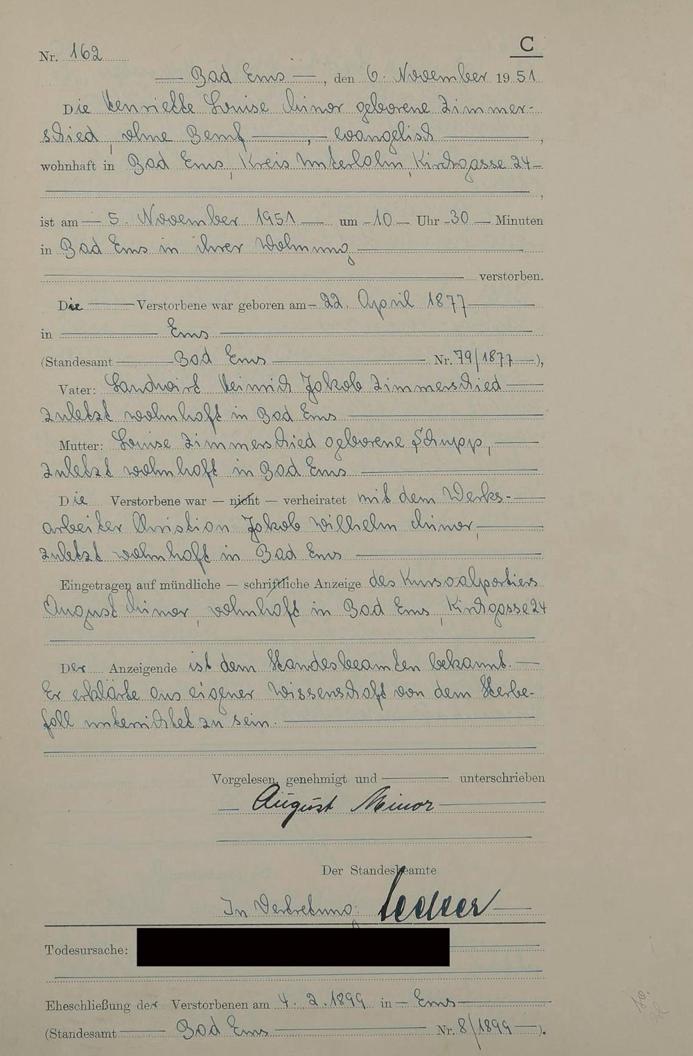 1527: Sterberegister 1951