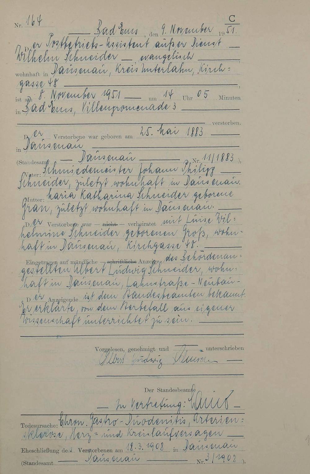 Sterberegister 1951