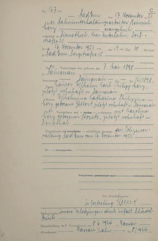 1527: Sterberegister 1951