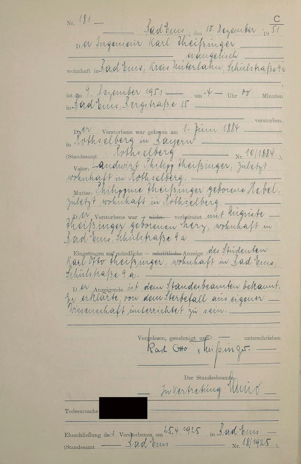 1527: Sterberegister 1951