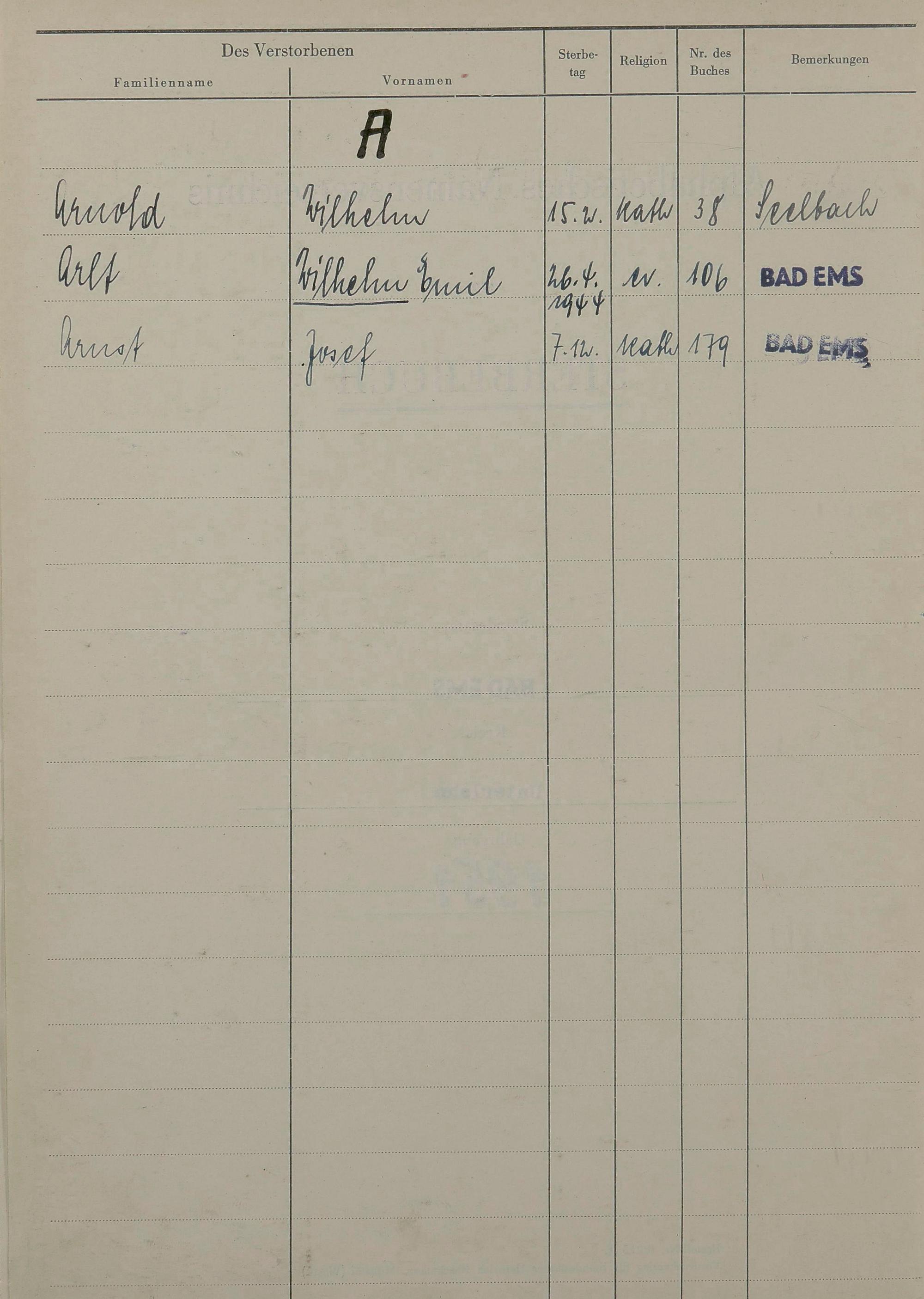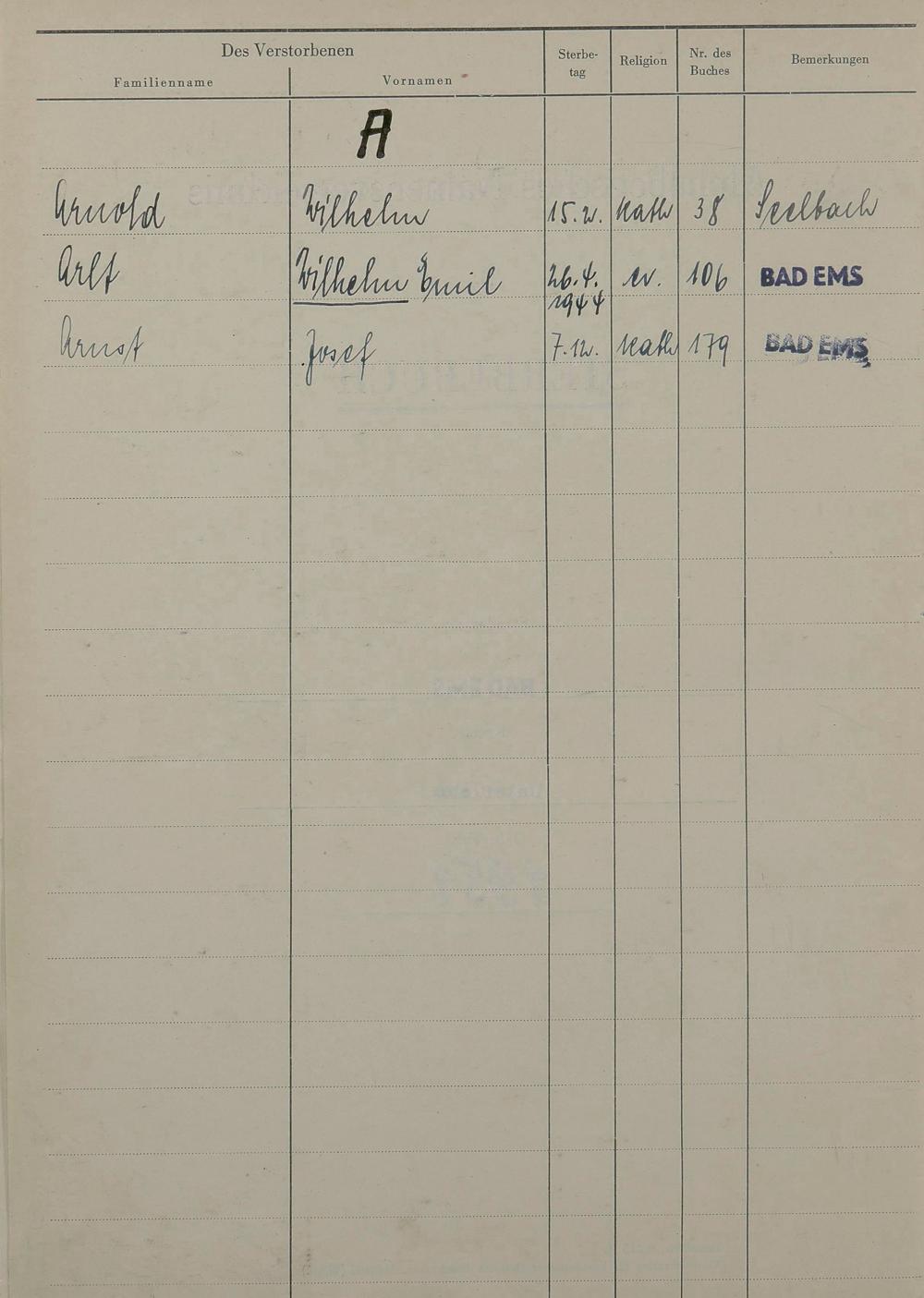 1527: Sterberegister 1951