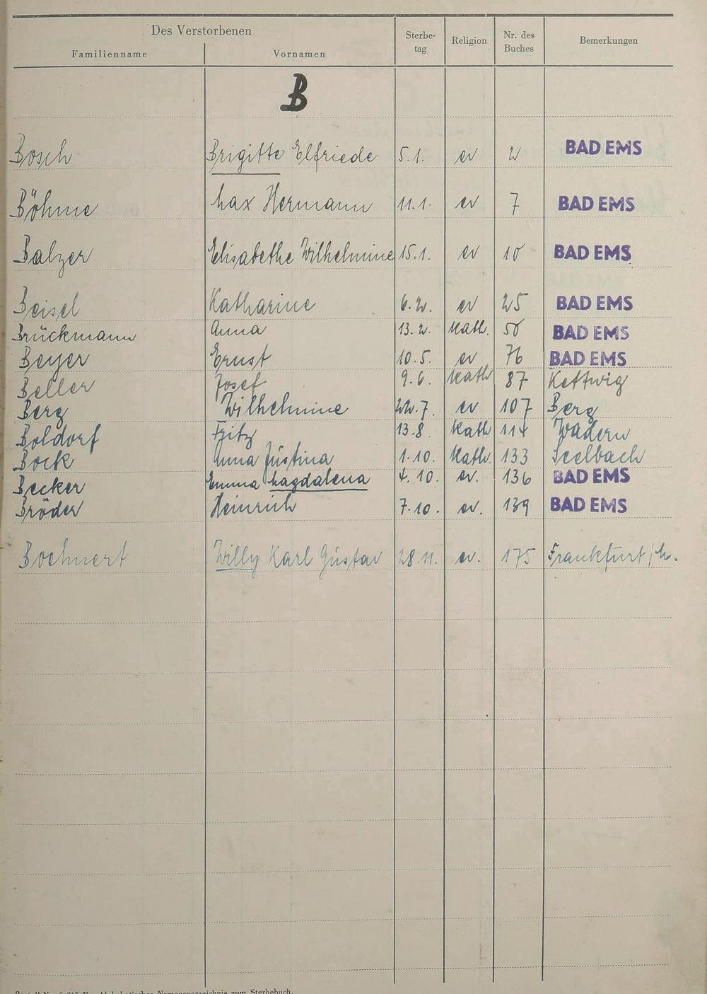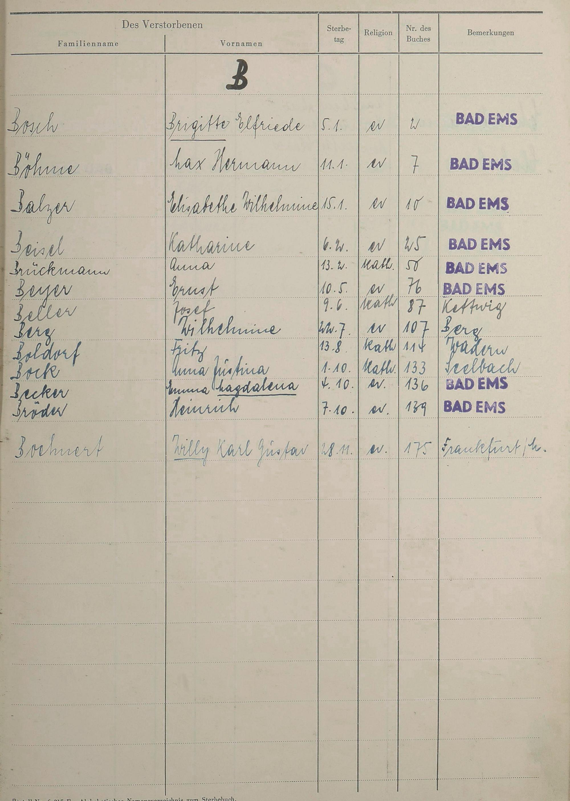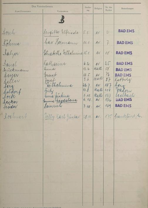 Sterberegister 1951