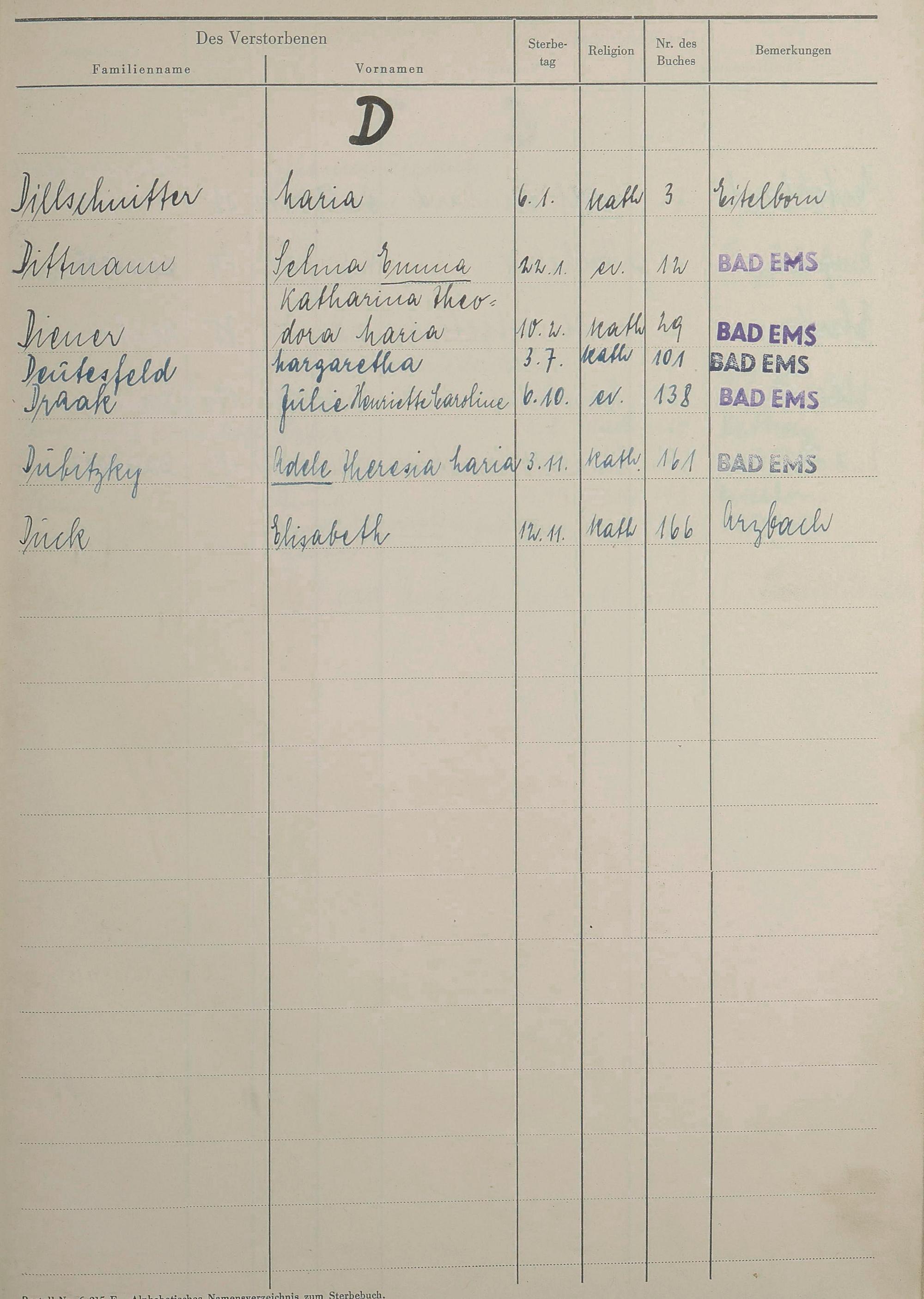 Sterberegister 1951
