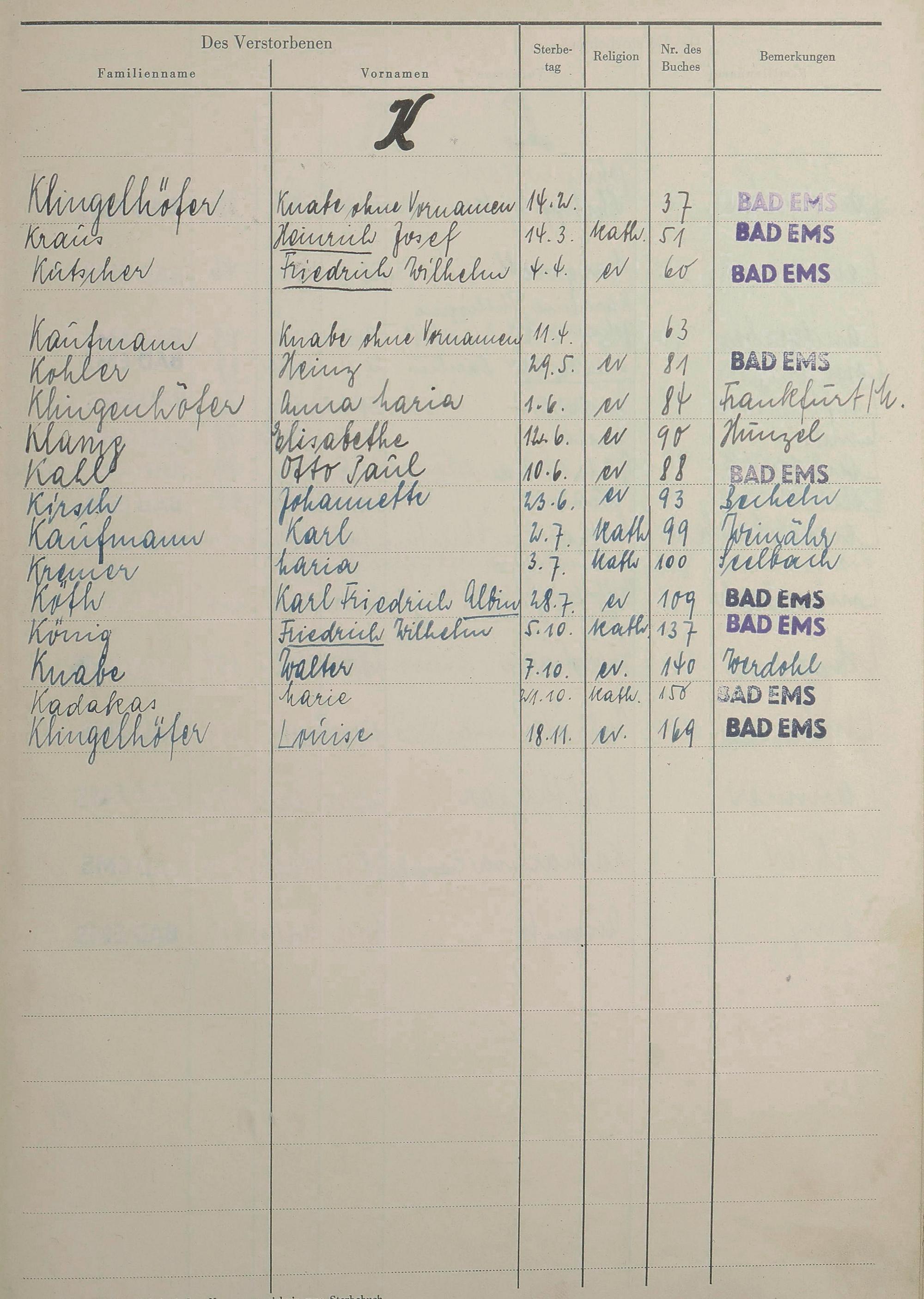 Sterberegister 1951