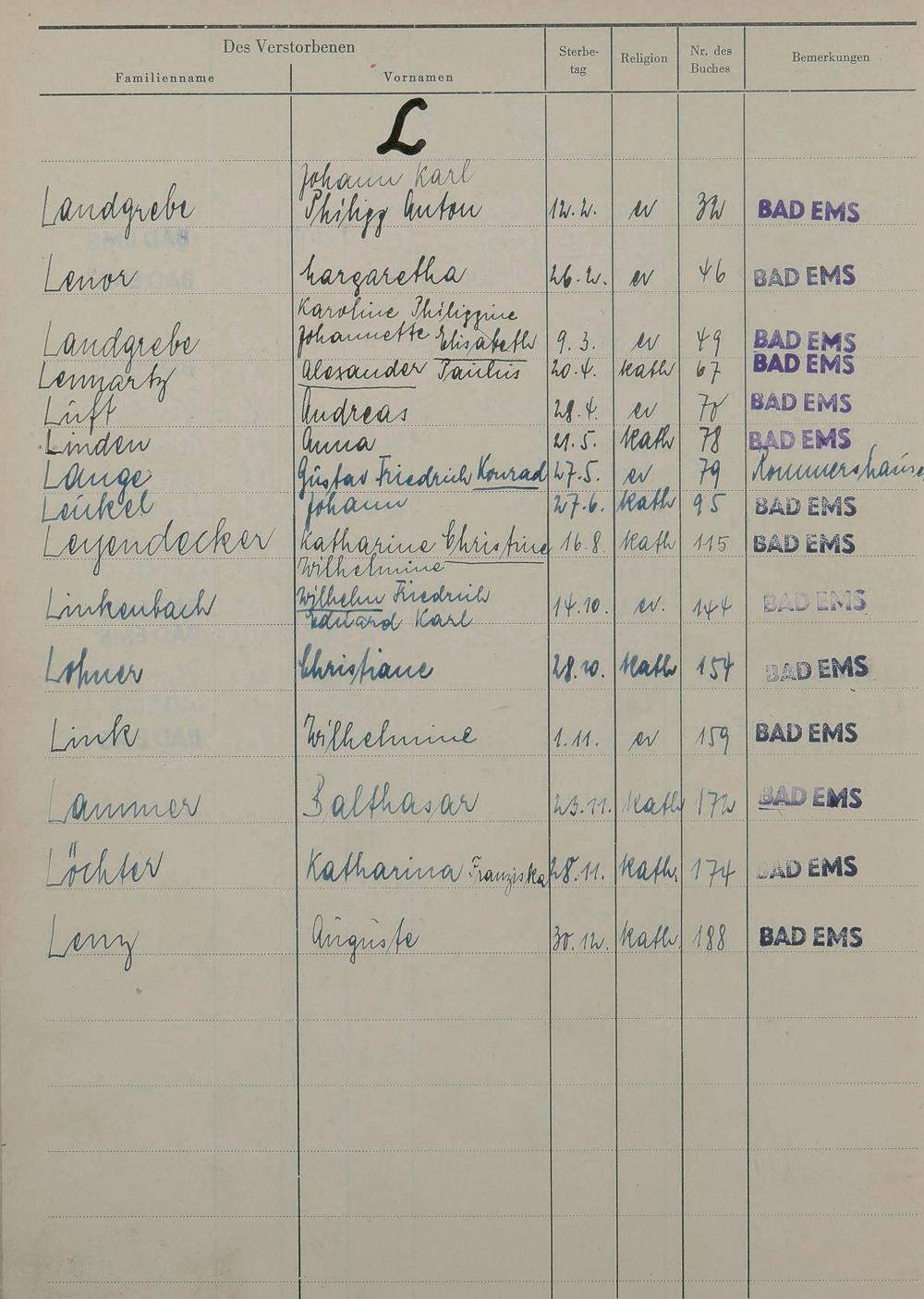 Sterberegister 1951