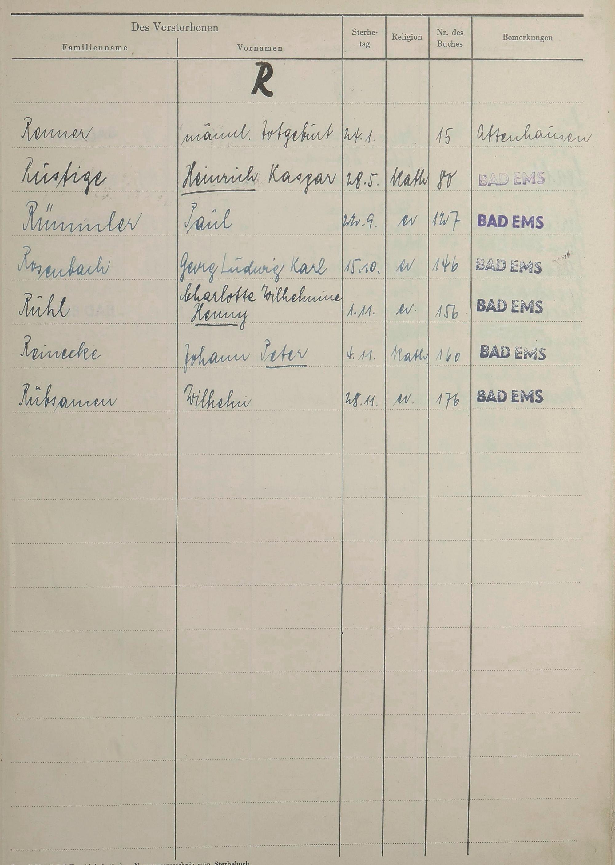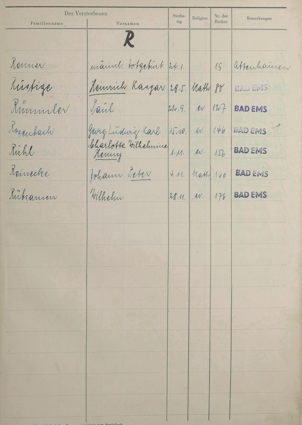 1527: Sterberegister 1951