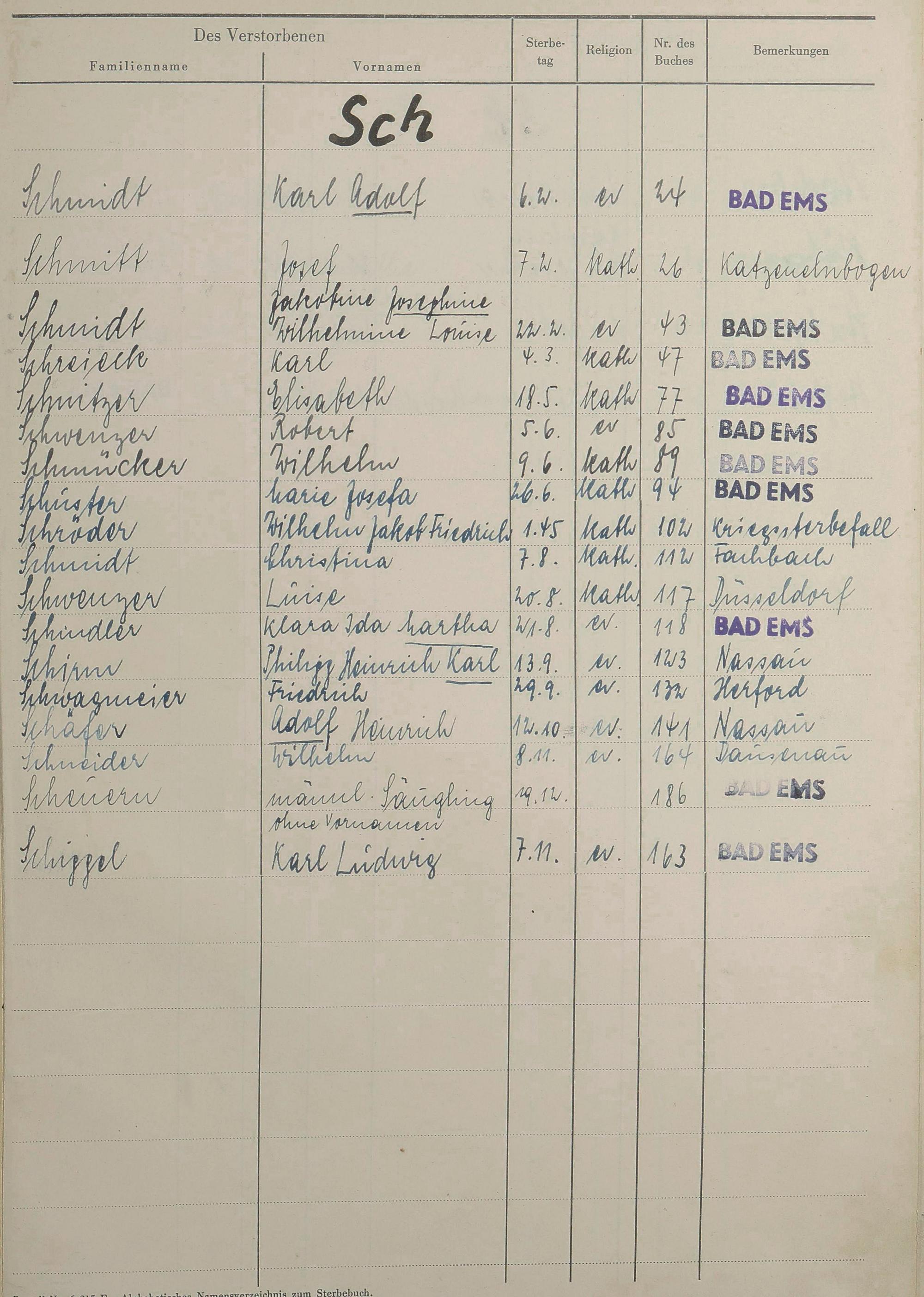 Sterberegister 1951