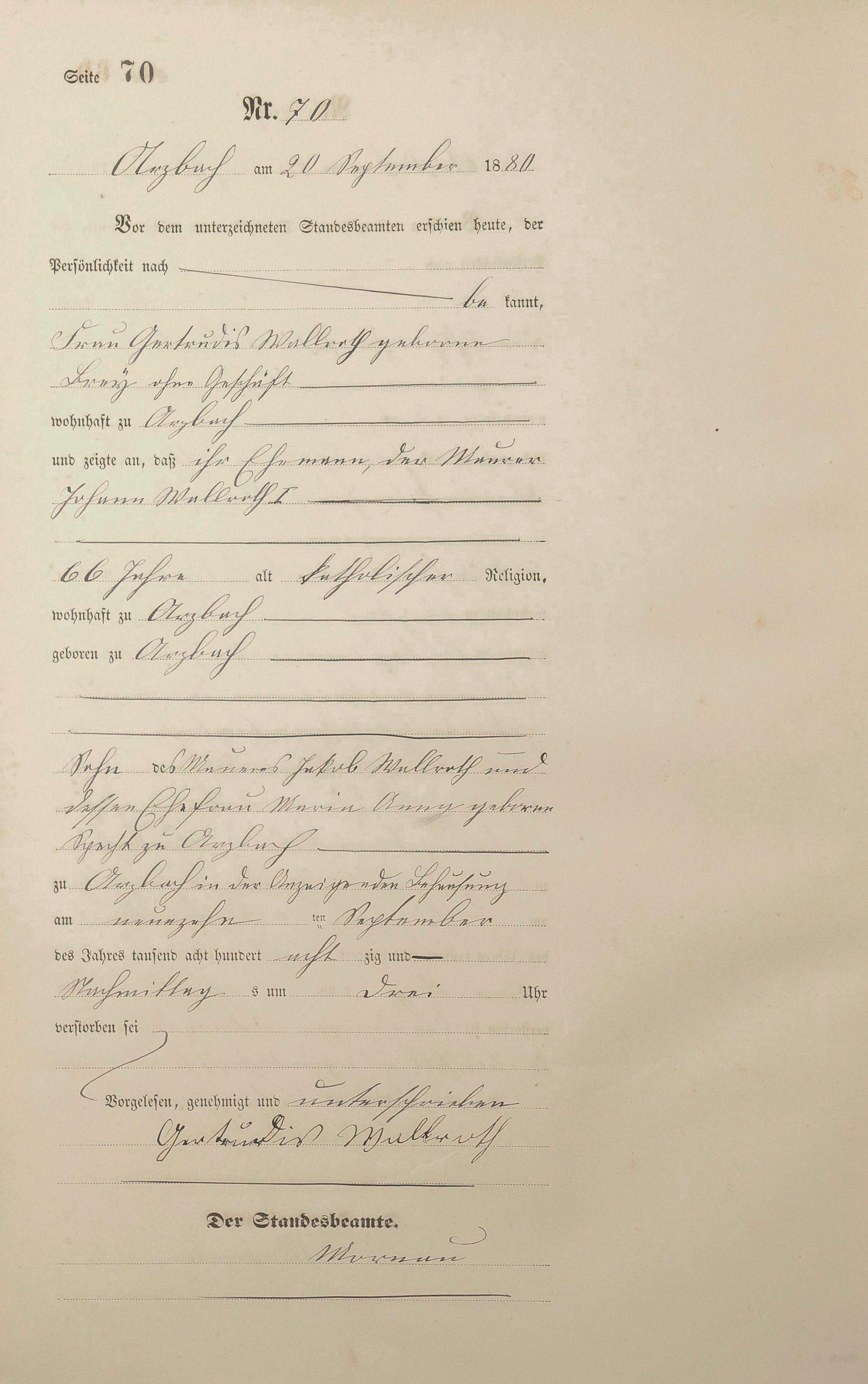 Sterberegister 1880