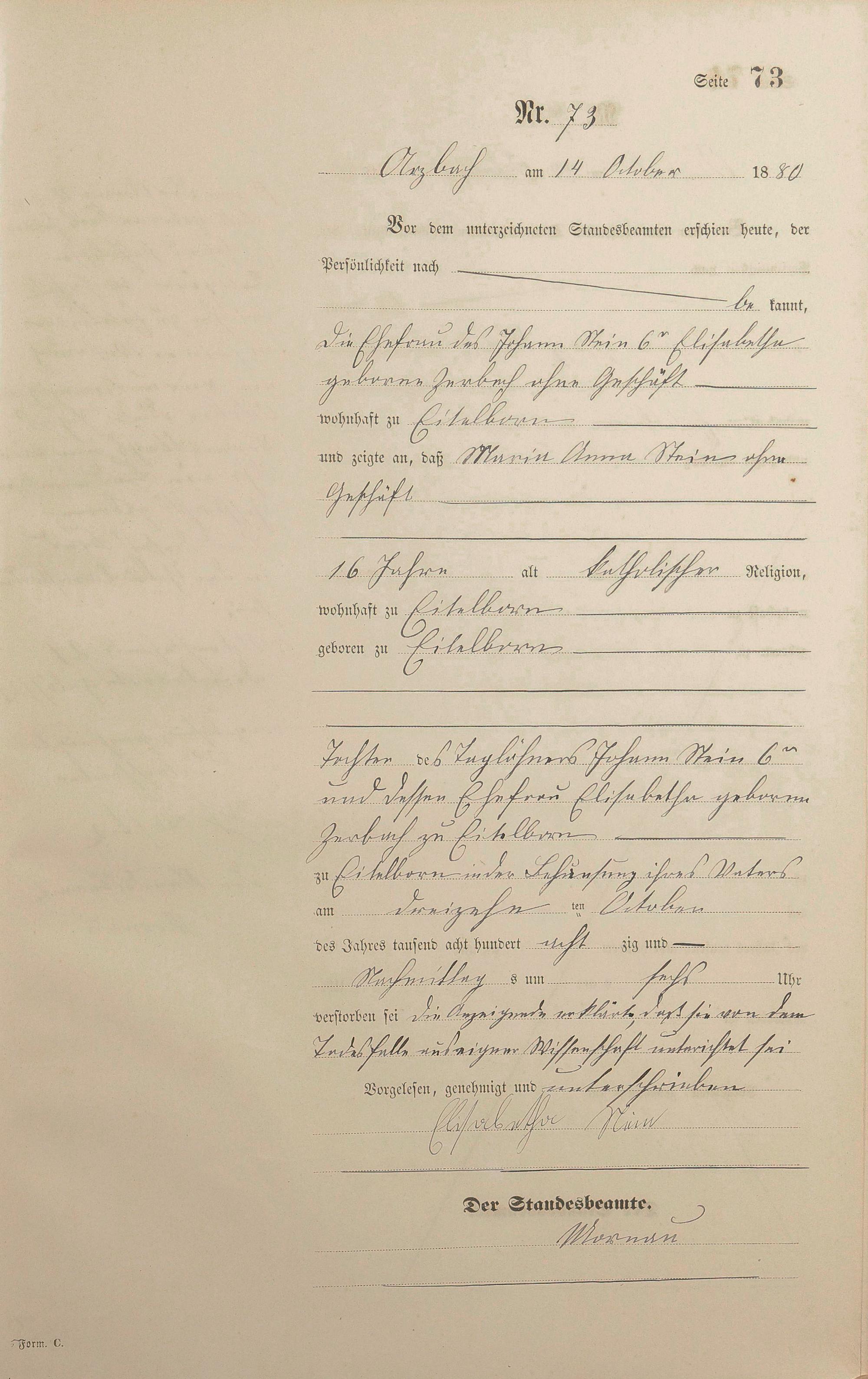 Sterberegister 1880