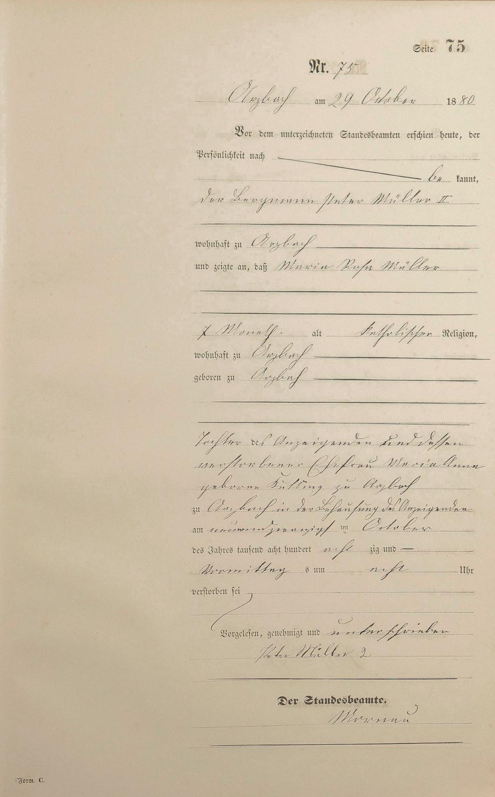 Sterberegister 1880