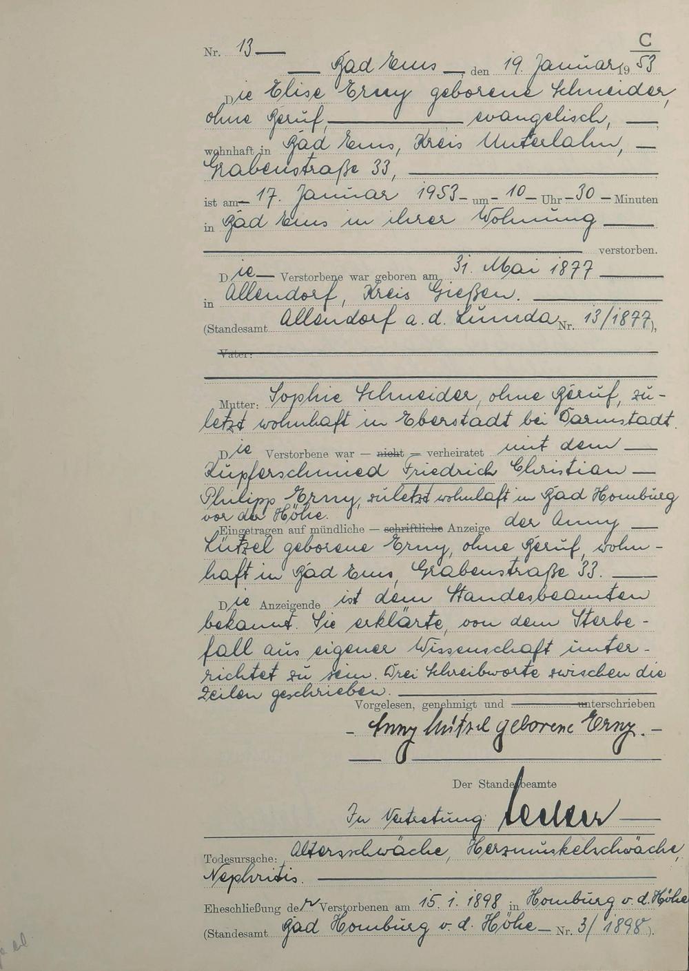 Sterberegister 1953