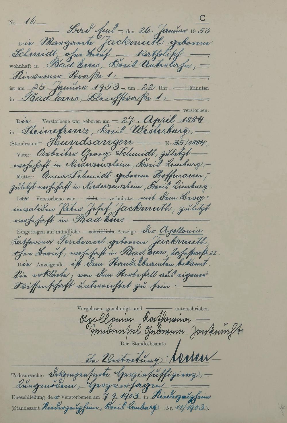 Sterberegister 1953