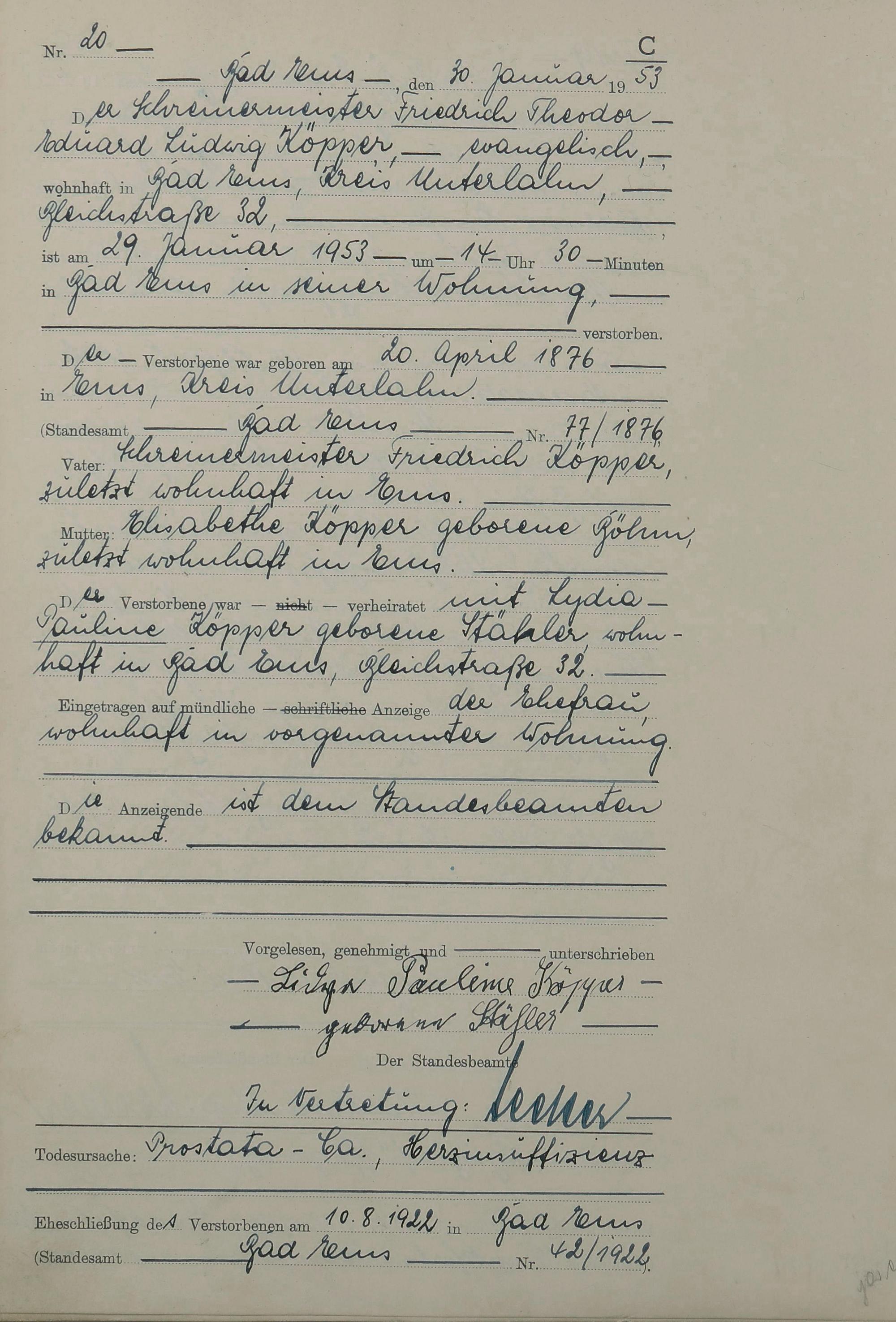 Sterberegister 1953