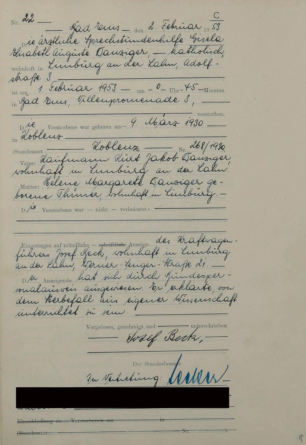 1529: Sterberegister 1953