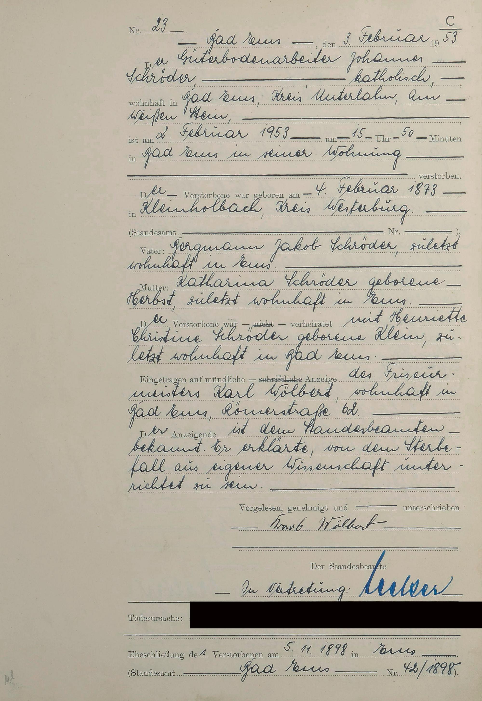 1529: Sterberegister 1953