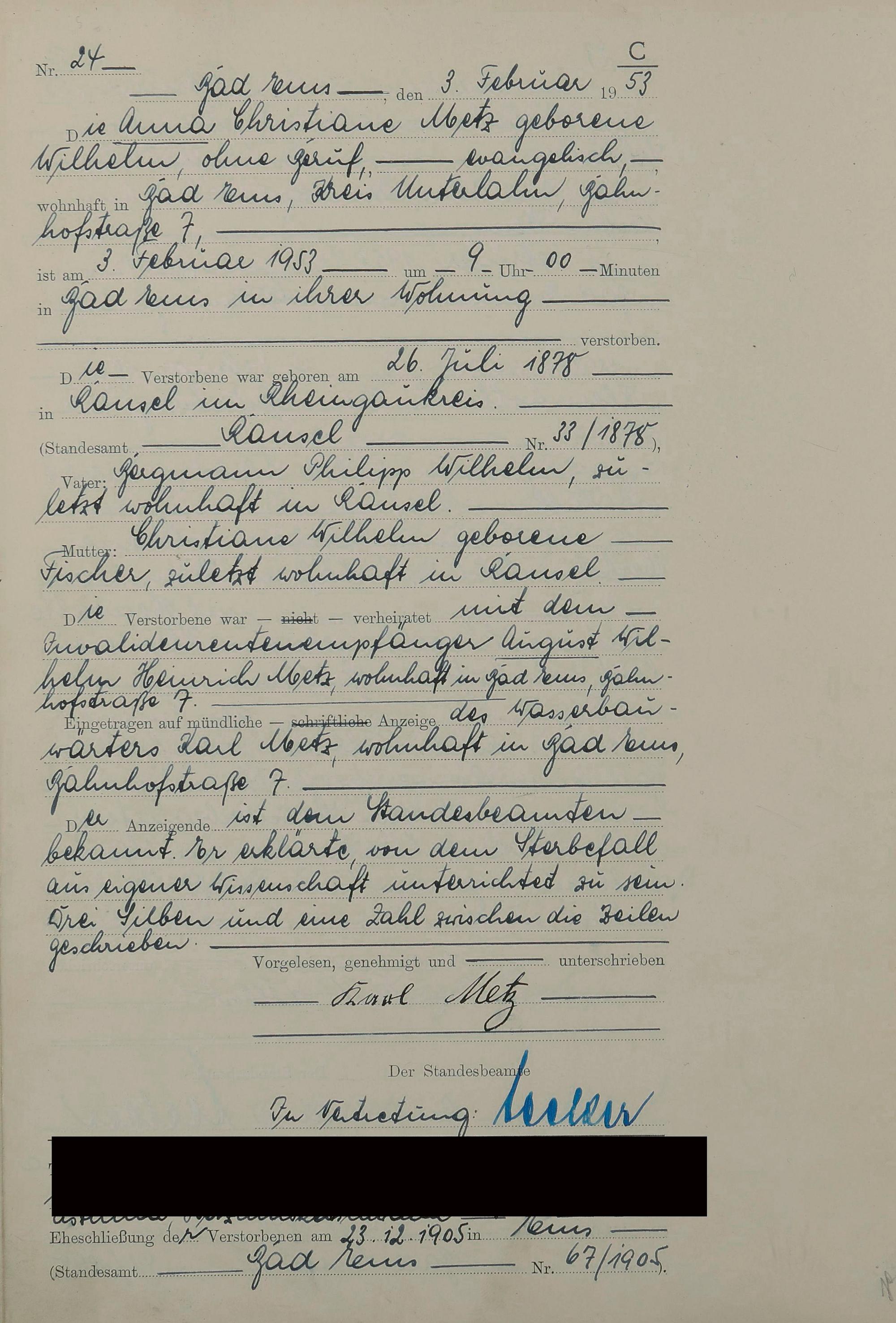 1529: Sterberegister 1953