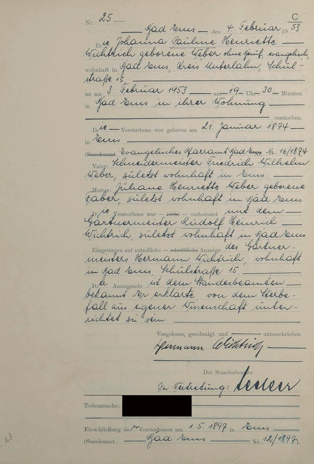 1529: Sterberegister 1953