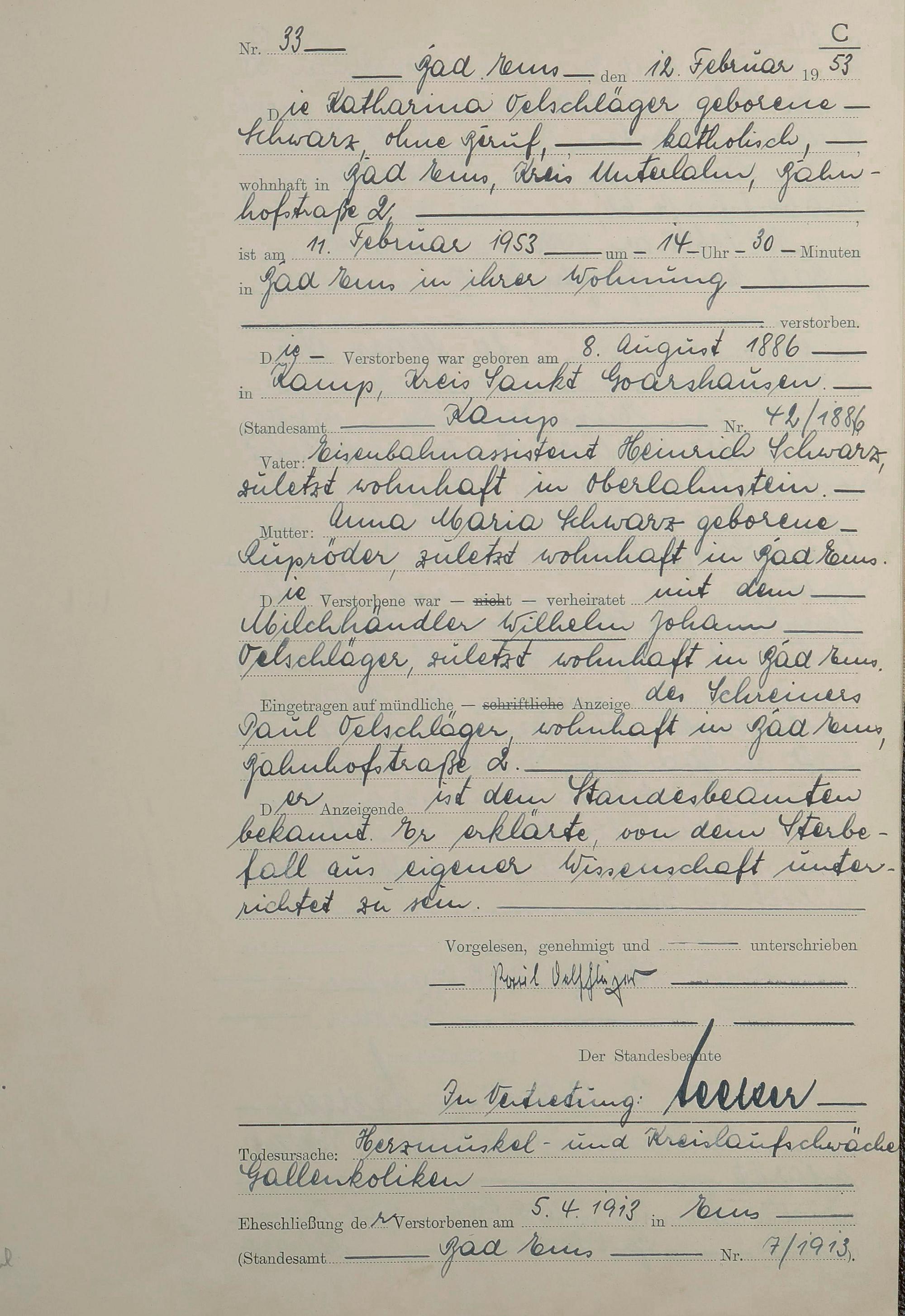 Sterberegister 1953