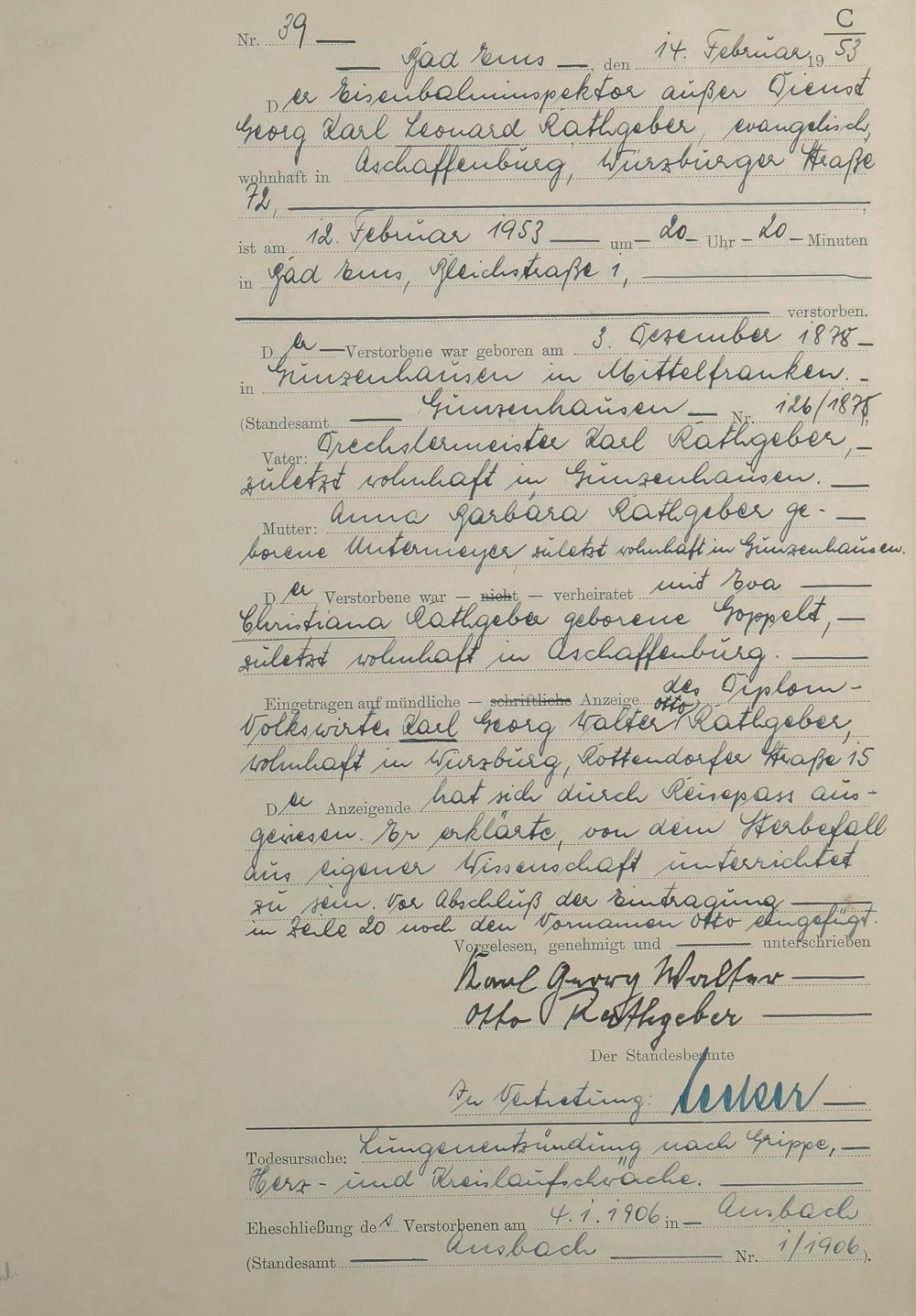 Sterberegister 1953