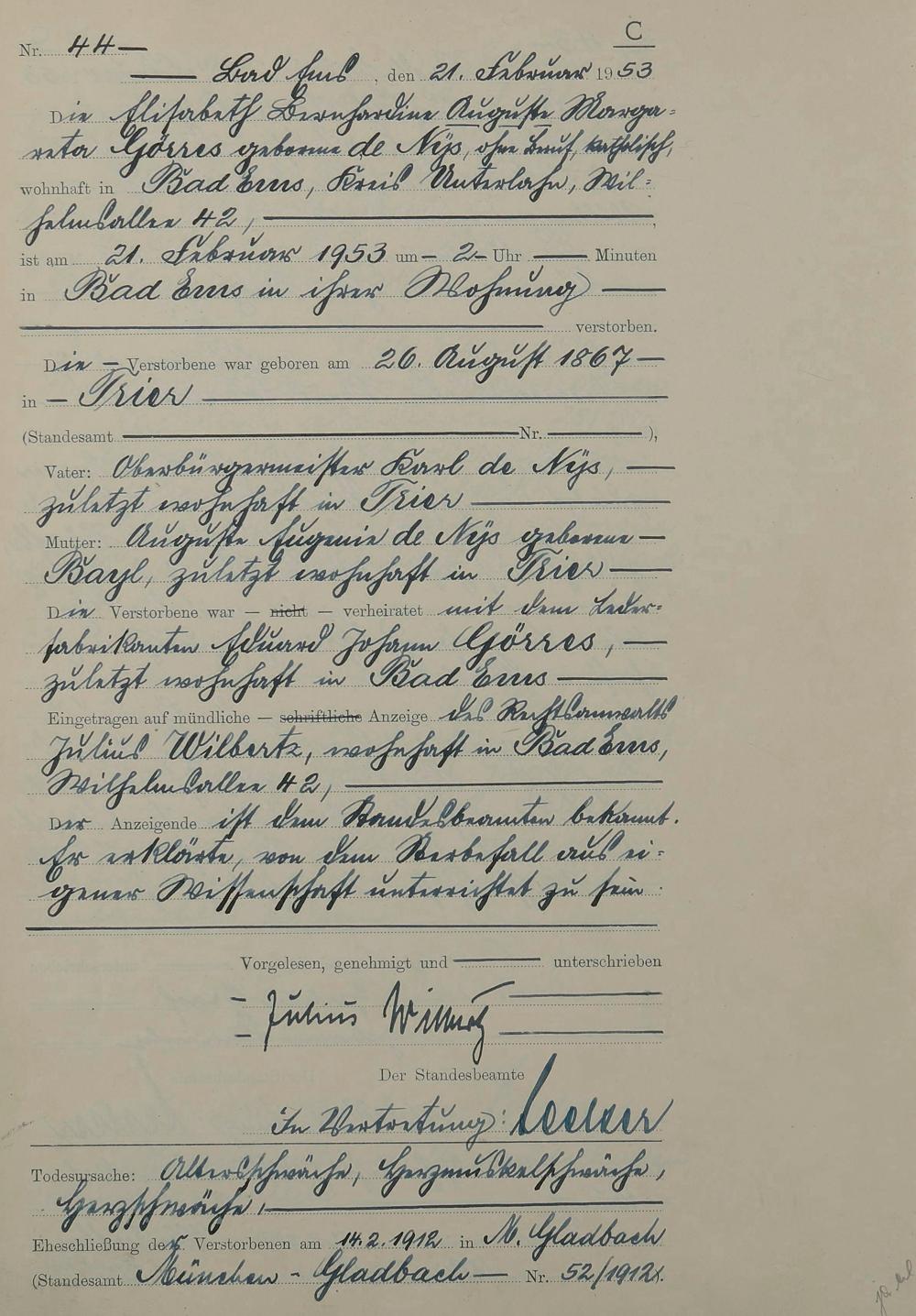 Sterberegister 1953
