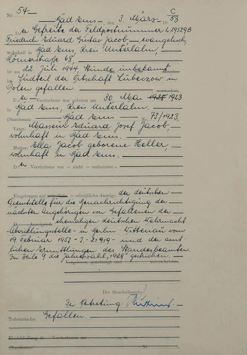 Sterberegister 1953